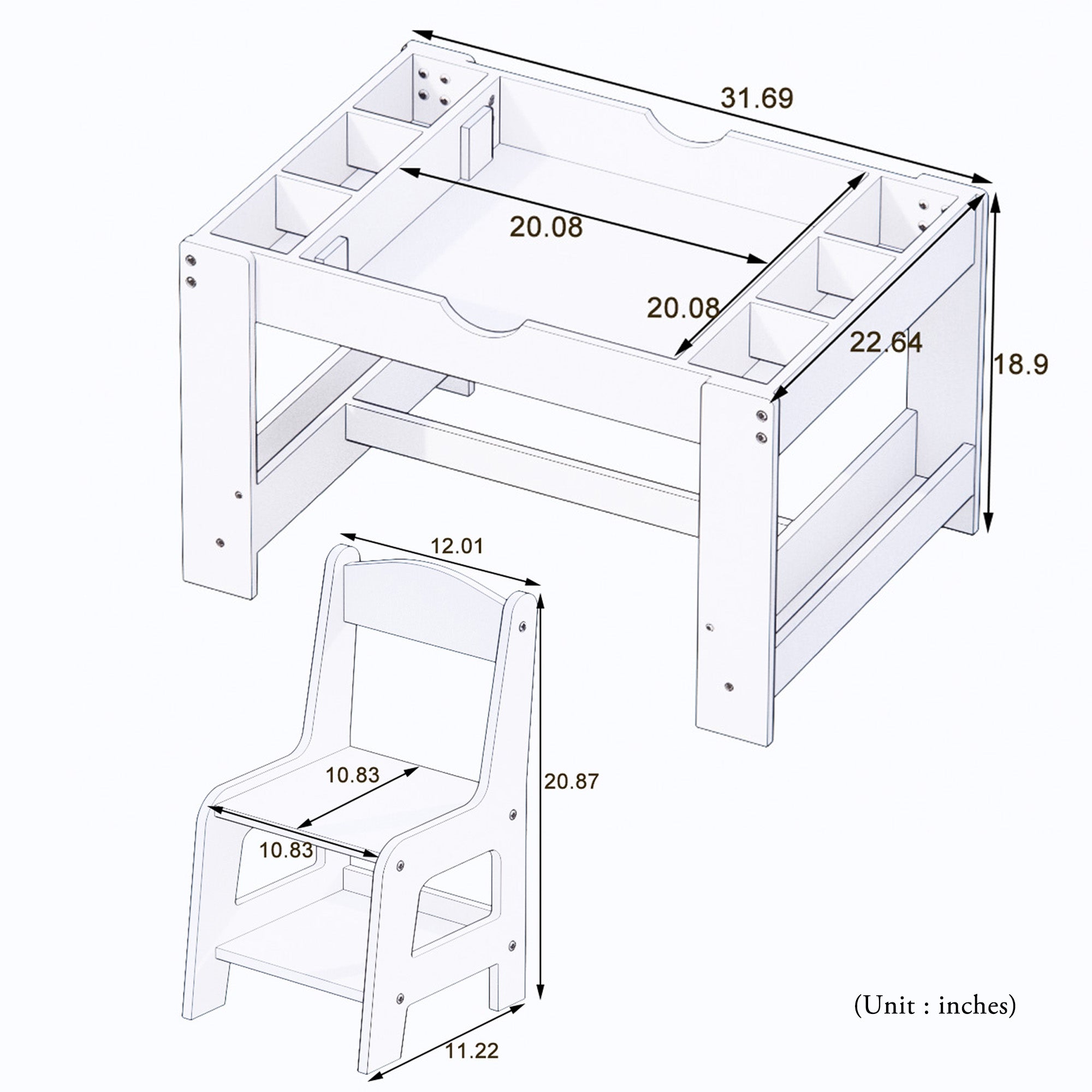This modern kids’ activity table and chair set turns playtime into a clean, organized, and creative learning experience. Designed for building-block compatibility and everyday use, the set combines durable construction with smart storage so children can build, create, and pack up easily. Its neutral white finish and compact footprint make it a versatile addition to playrooms, bedrooms, or classrooms.