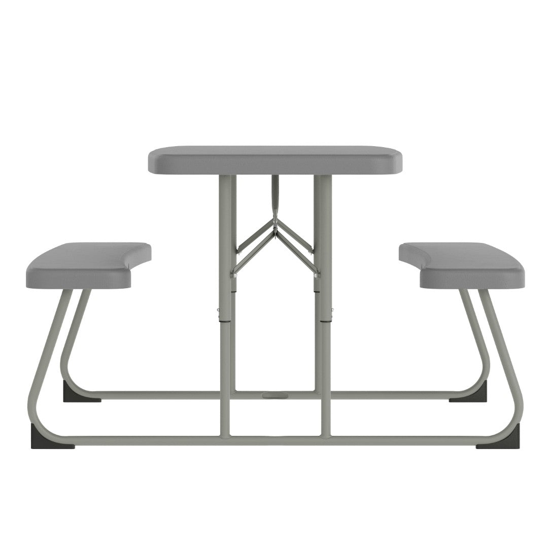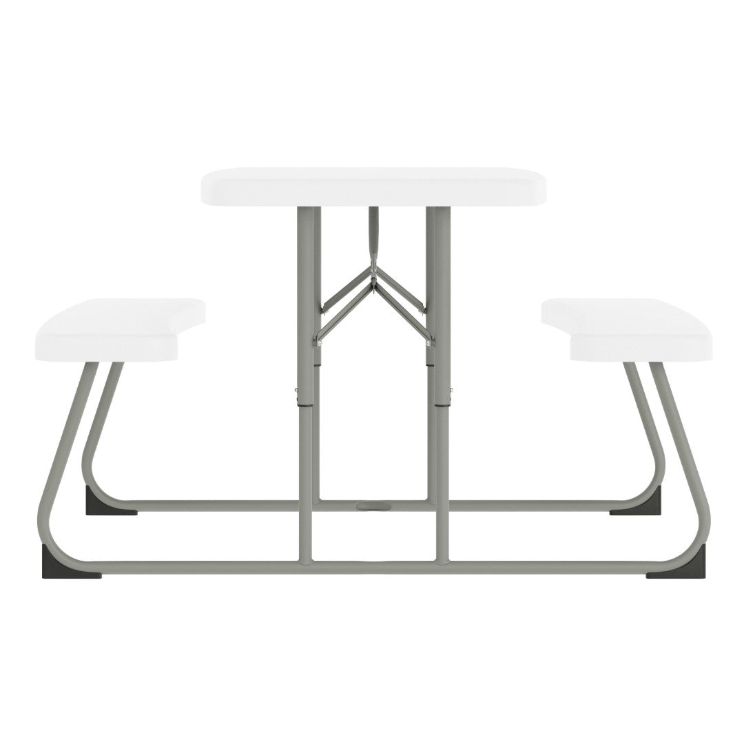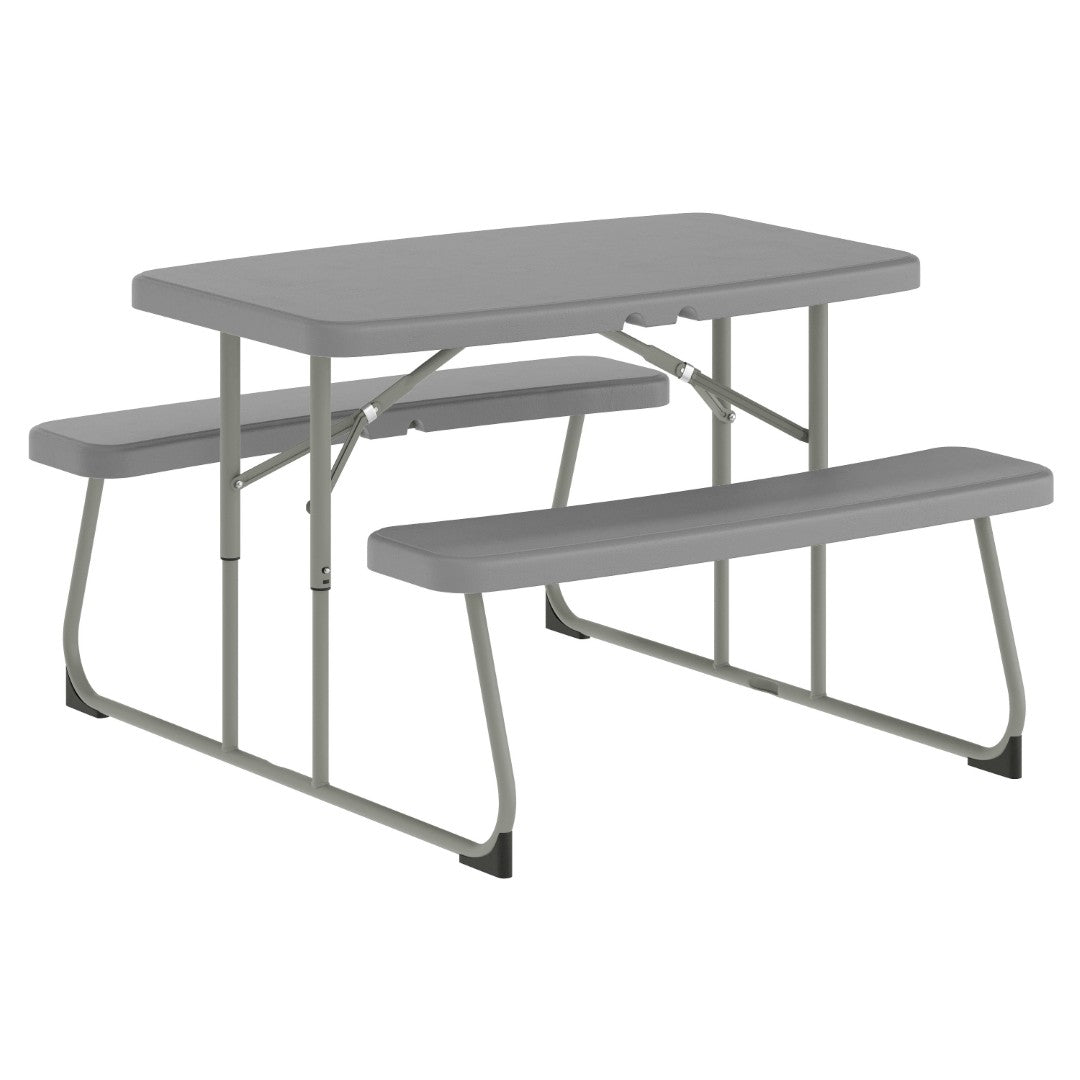 Give your child a safe, durable place to eat, play, and create with this commercial-grade folding picnic table designed just for little ones. Built to withstand everyday use at home, school, or daycare, the table and attached benches combine waterproof, stain- and impact-resistant surfaces with a sturdy welded steel frame and locking legs for reliable stability. Lightweight, easy to clean, and folding flat for storage, this table delivers practical performance and kid-friendly comfort without any assembly required.