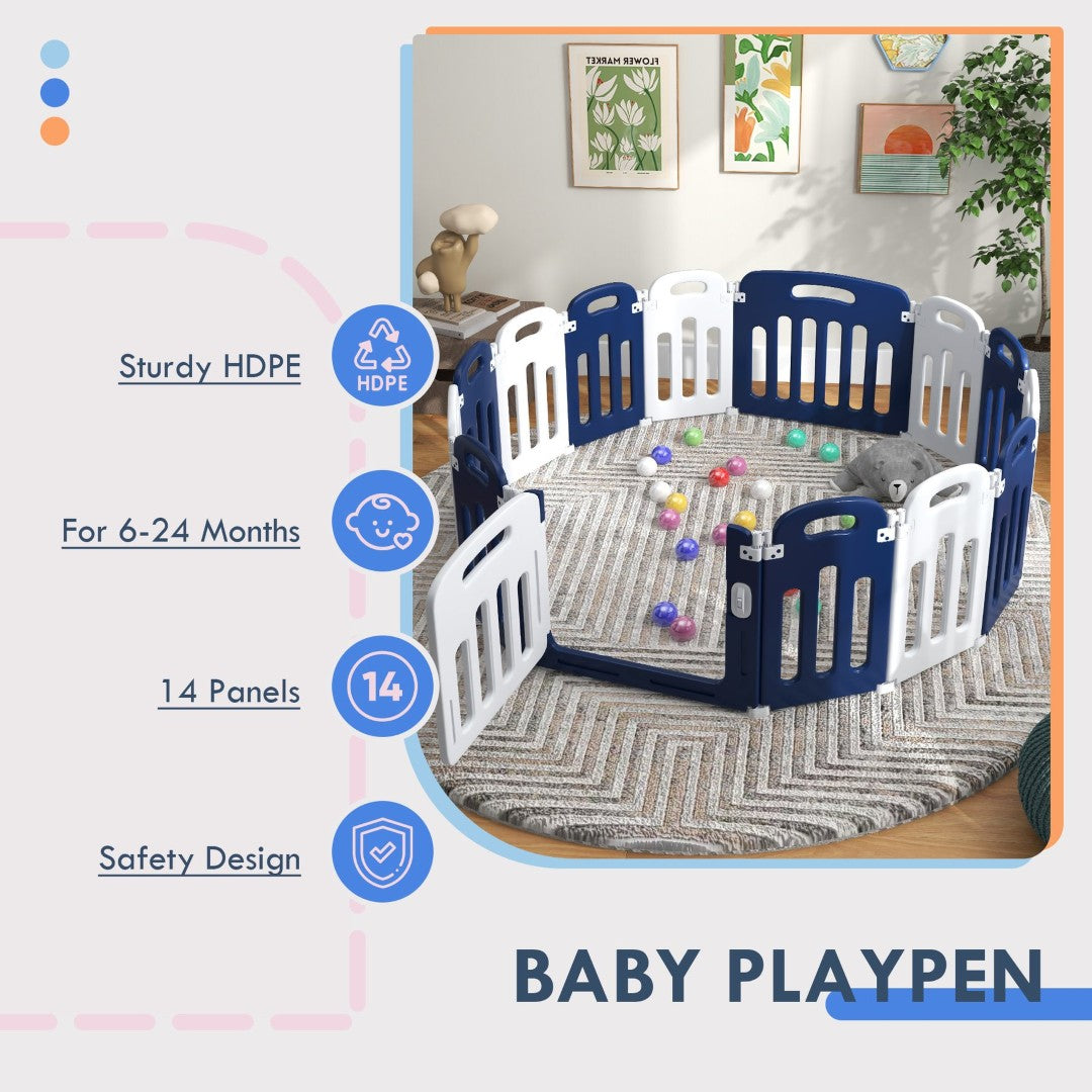 - Customizable Baby Play Area: With 14 panels at your disposal, create a great play area tailored to your child's needs, accommodating toys, playmats, and more.