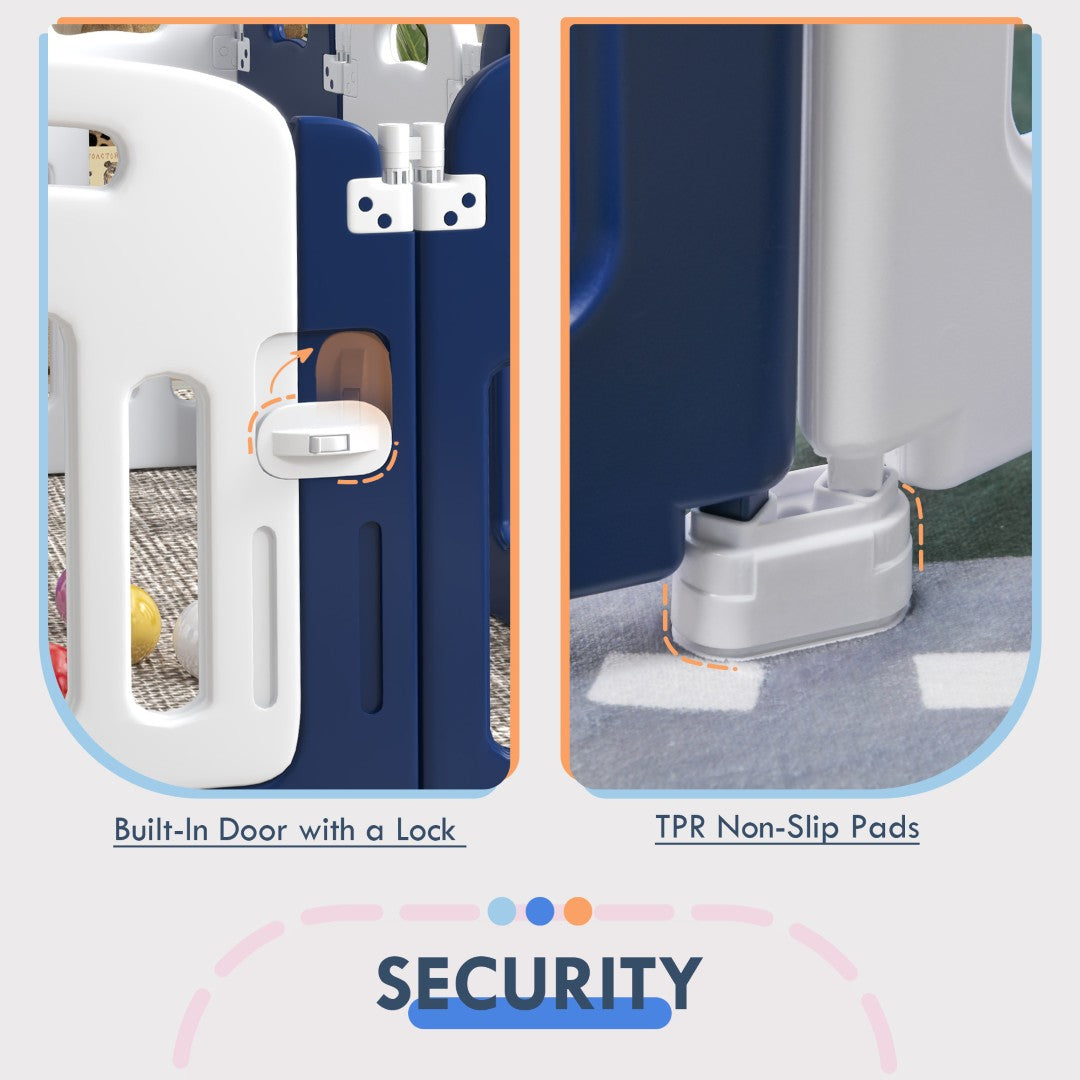 Keep your little one safely entertained with a versatile, durable play area designed for both indoor and outdoor use. This foldable playpen combines sturdy HDPE construction, a convenient locking door, and anti-slip TPR pads to create a secure, flexible activity center you can rearrange to fit your space and routines. Ideal for supervised play, tummy time, and toy organization, it offers peace of mind without taking up permanent floor space.