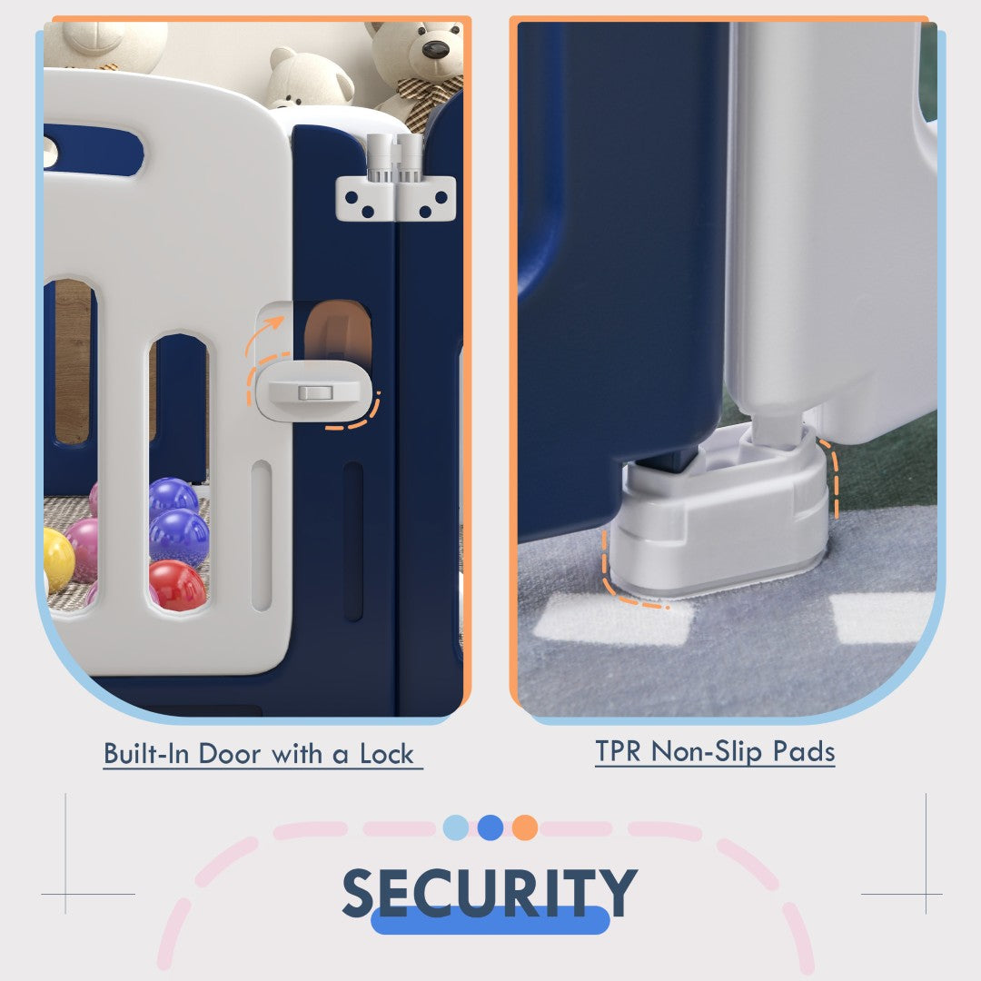 - Great Safety: The built-in door is convenient and has a reliable lock to prevent accidental escapes. TPR non-slip pads add an extra layer of security, keeping your baby fence stable on various floor surfaces.