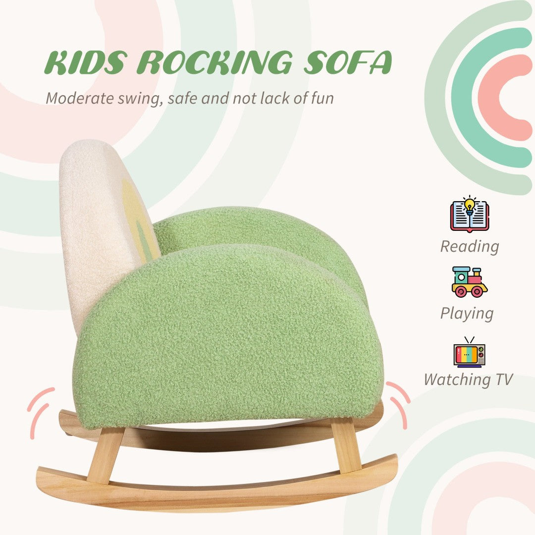 Give your little one a cozy spot to relax, read, and play with this supportive rocking toddler sofa. Soft faux lamb fleece upholstery and thick foam padding create a snug, inviting seat while the solid wooden frame provides gentle, stable rocking motion—perfect for calm playtime in the nursery or playroom. Built with rounded foam corners and a high backrest, this armchair balances safety, comfort, and cheerful style for children ages 18–36 months.