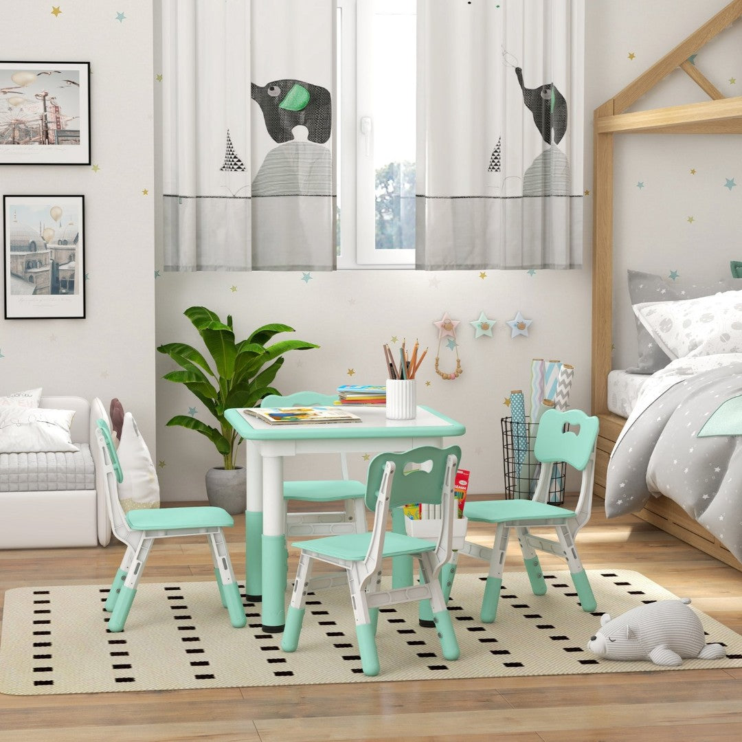 Give your child a comfortable, durable space for play, learning, and creativity with this adjustable 5-piece kids table and chair set. Designed for toddlers through preschoolers, the set balances safety, practicality, and easy maintenance — ideal for homes, classrooms, or daycare centers. The adjustable heights and handy storage keep activities organized and ergonomic as your child grows.