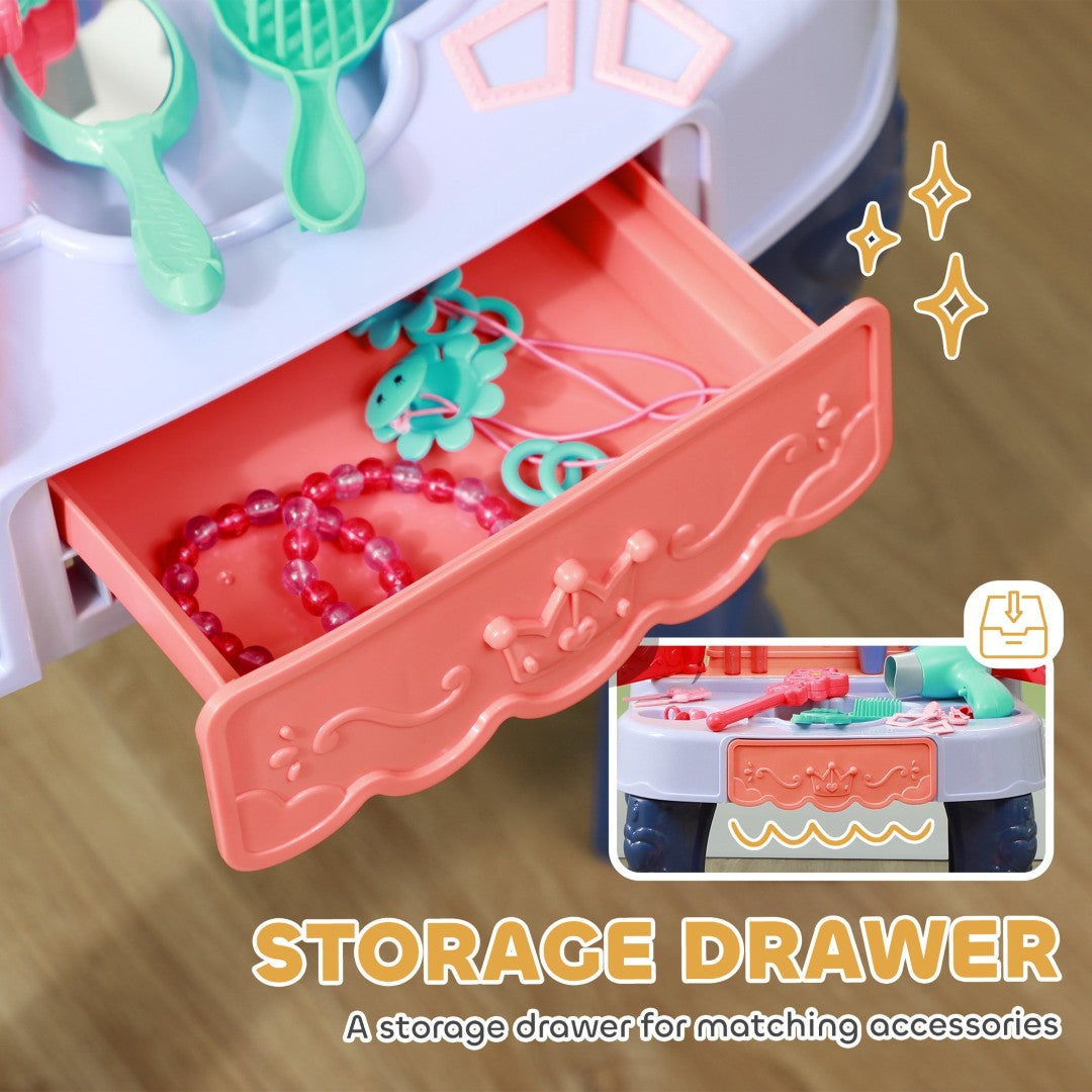 - Fun Hairdryer Included: This toddler vanity set enhances your little girl's playtime with a realistic hairdryer that produces a sound and a gentle breeze. Complete with a drawer for tidy storage of all her beloved beauty supplies.