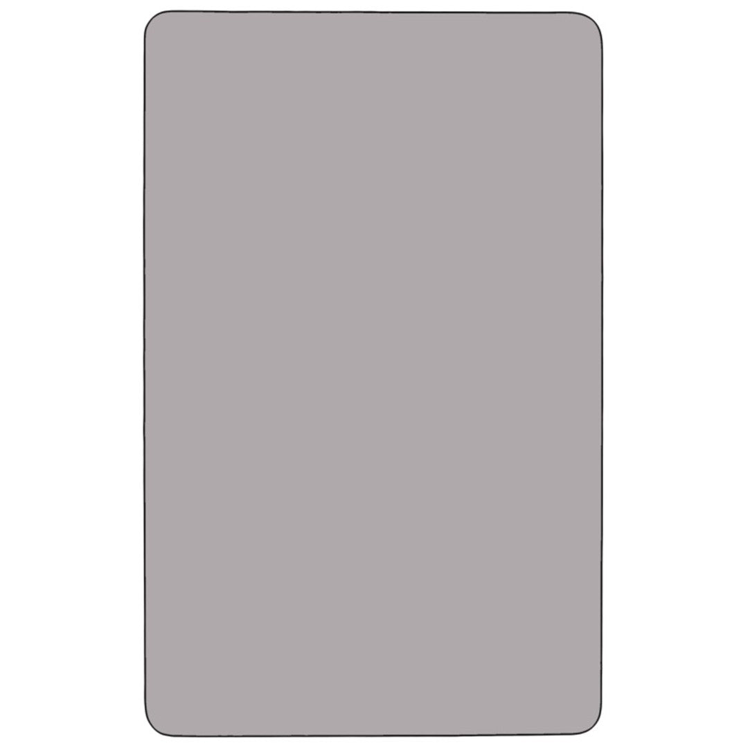 - Top construction: 1.125" thick thermal-fused grey laminate surface that is scratch-, stain-, and warp-resistant with a protective underside backing sheet to prevent moisture absorption.