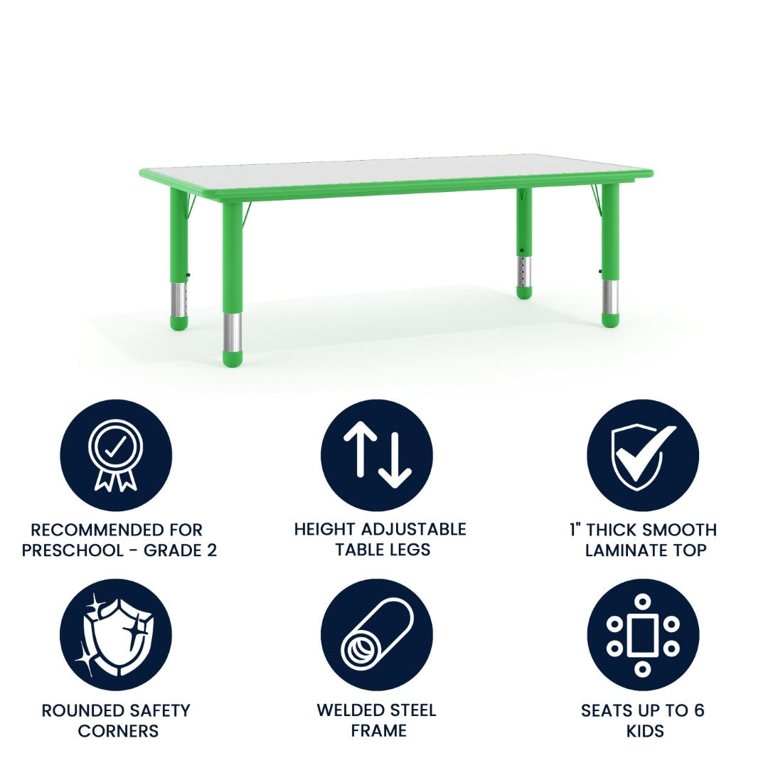 - Adjustable Height: Steel legs adjust in 1" increments to accommodate recommended seat heights from 6.5"–14" and support children from preschool through 2nd grade.