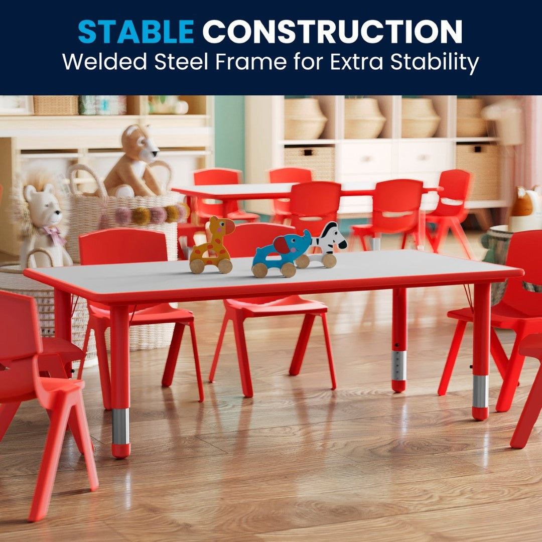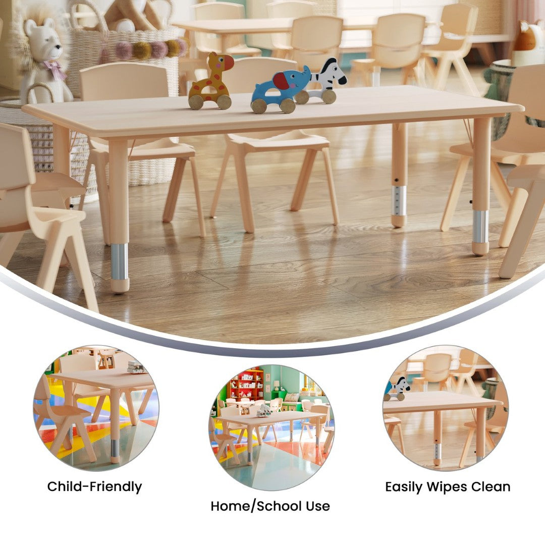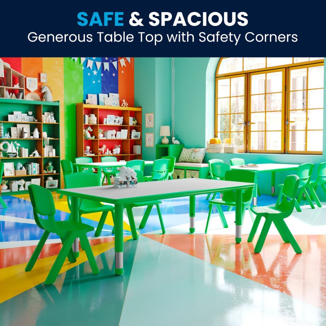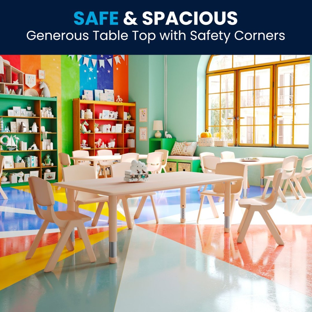 Perfect for classrooms, daycares, and playrooms, this durable kids activity table combines safety, flexibility, and easy maintenance to support a wide range of preschool activities — from arts and crafts to snack time and collaborative learning. Its rugged construction and adjustable-height design let the table grow with children and adapt to different uses in busy, multi-age settings.