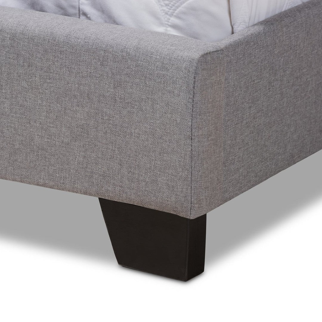 Transform your bedroom with the Alesha bed — a modern, contemporary piece that blends clean lines, subtle detailing, and durable construction for a polished, comfortable focal point. Upholstered in neutral grey polyester and finished with black feet, the bed’s winged, curved headboard with button tufting adds visual interest while providing supportive backrest for reading or relaxing. Built with engineered wood and rubberwood, the frame is designed for long-lasting use and is compatible with standard box spring and mattress (mattress not included). Made in Malaysia; some assembly required.