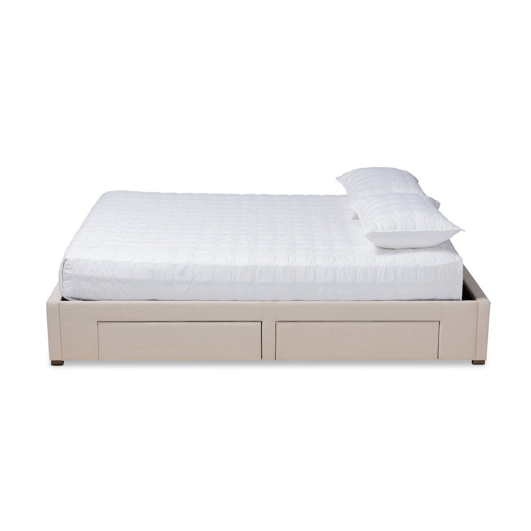 Give your bedroom a sleek, practical upgrade with this modern platform storage bed that combines comfortable upholstery with smart, built-in organization. Soft, resilient polyester fabric and foam padding create a cozy, inviting sleeping surface, while four integrated drawers keep linens and essentials neatly tucked away — ideal for smaller rooms or minimalist decor.