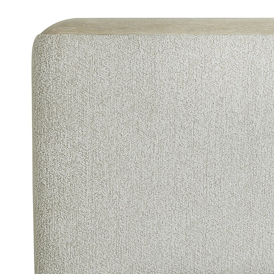 Elevate your bedroom with the Arcadia panel bed — a serene, rustic-modern centerpiece that combines soft upholstery with finely detailed woodgrain accents. Its gracefully rounded headboard and footboard create a calming silhouette, while the cast resin cap rails with a Clay woodgrain finish add depth and artisanal character. Thoughtfully constructed for both style and support, this bed pairs textured fabric with durable components to deliver lasting comfort and visual appeal.