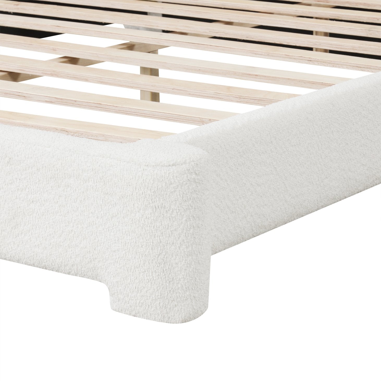 Transform your bedroom into a serene retreat with this cozy white boucle upholstered bed. Its soft, inviting upholstery and clean, minimalist silhouette bring a calm, contemporary feel while providing durable support and everyday practicality—ideal for modern master suites, guest rooms, or any space that needs a touch of understated elegance.