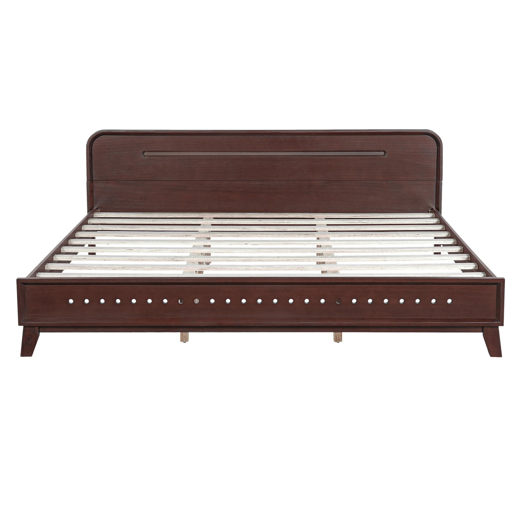 - TIMELESS DESIGN:Crafted with rich Dark Walnut tones, this king-size bed artfully combines premium solid pine wood, MDF and Pollywood construction to achieve a harmonious blend of classic sophistication and modern resilience. The streamlined silhouette with refined detailing adds an air of understated luxury to any bedroom setting.