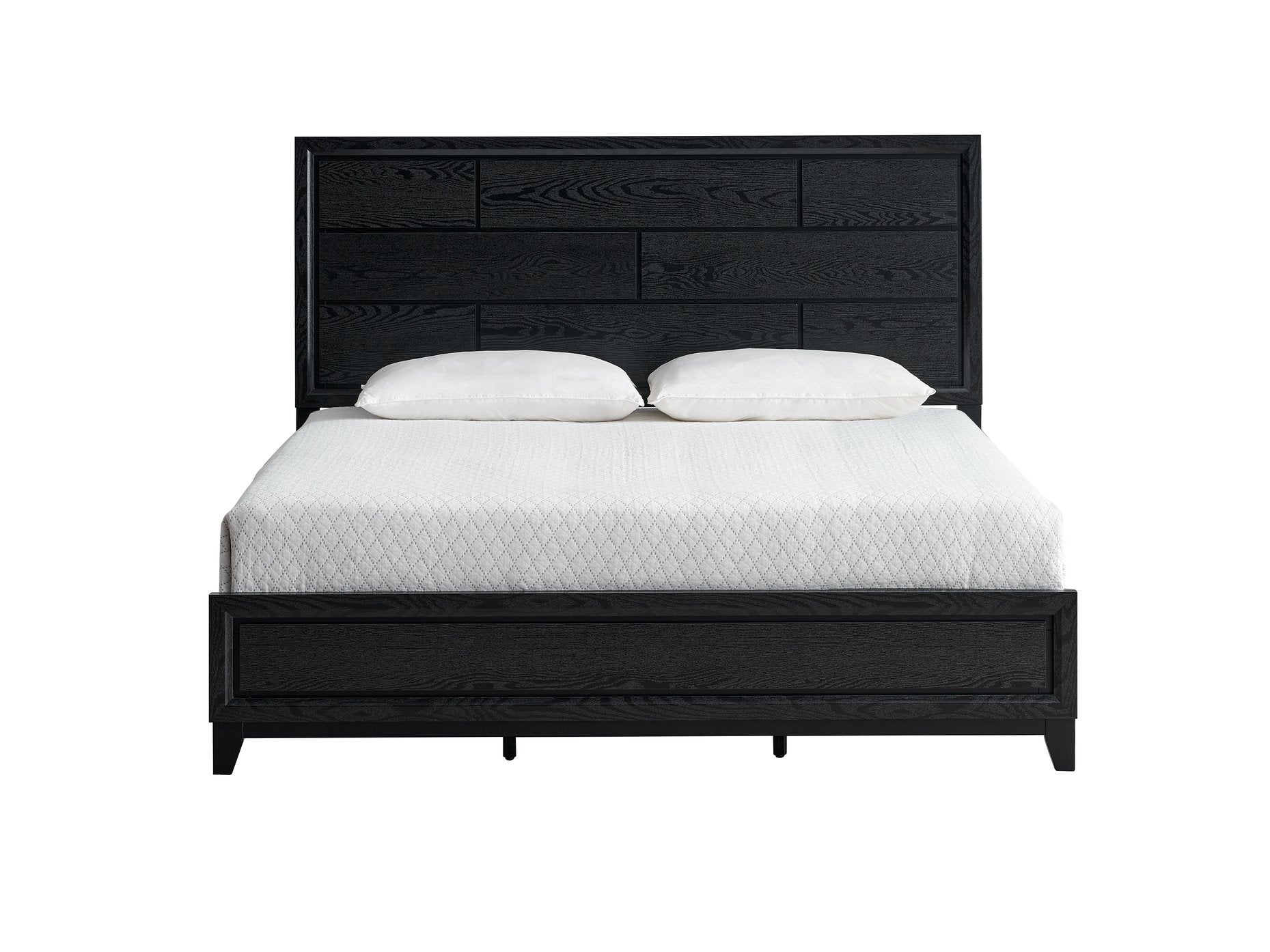 Give your bedroom an instant modern upgrade with this bold black king bed. Built from durable wood with a deep black finish, it delivers both striking style and dependable support for everyday use. Thoughtful design features—like practical seat height, accessible bed depth, and under-bed storage—make this bed as functional as it is attractive. Mattress not included; a box spring or other mattress support is required.