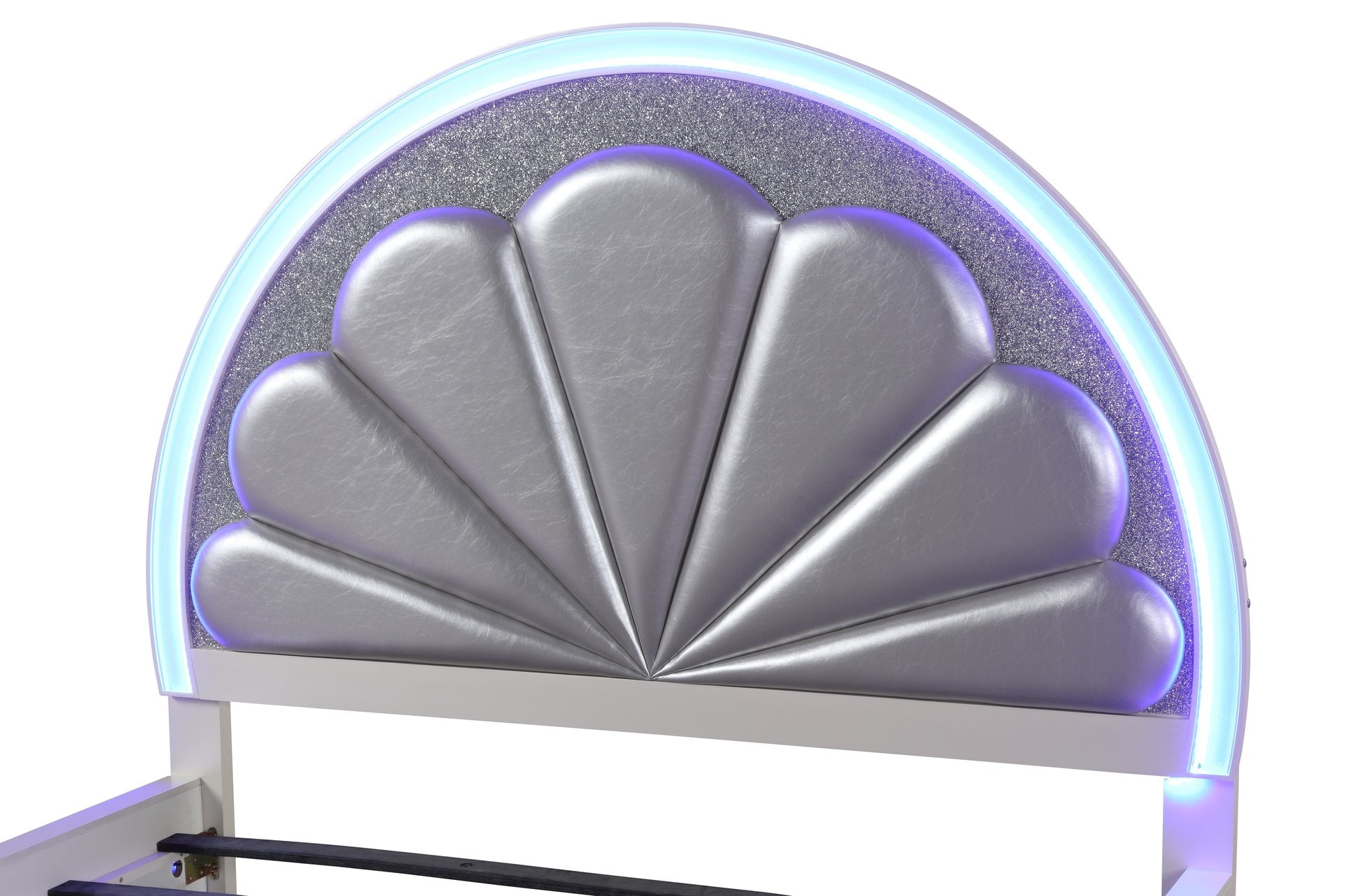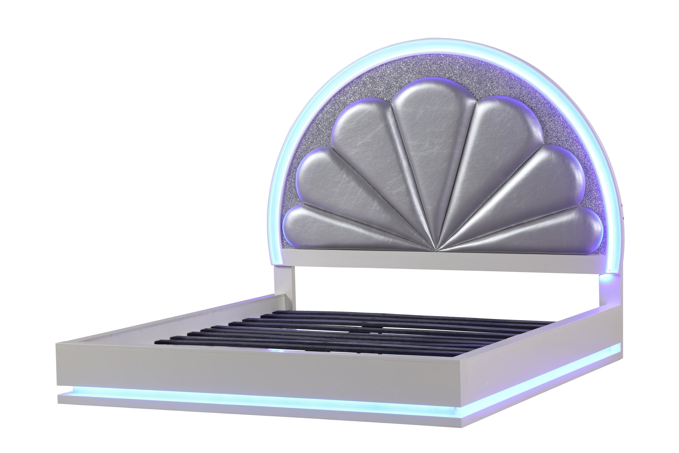 Elevate your bedroom with a luxurious, contemporary king bed that combines elegant design, soft ambient lighting, and durable craftsmanship. Finished in a milky white hue with crystal-pattern accents and channel-tufted upholstery, this bed creates a serene, upscale atmosphere while LED lighting highlights its details and provides gentle, mood-enhancing illumination.