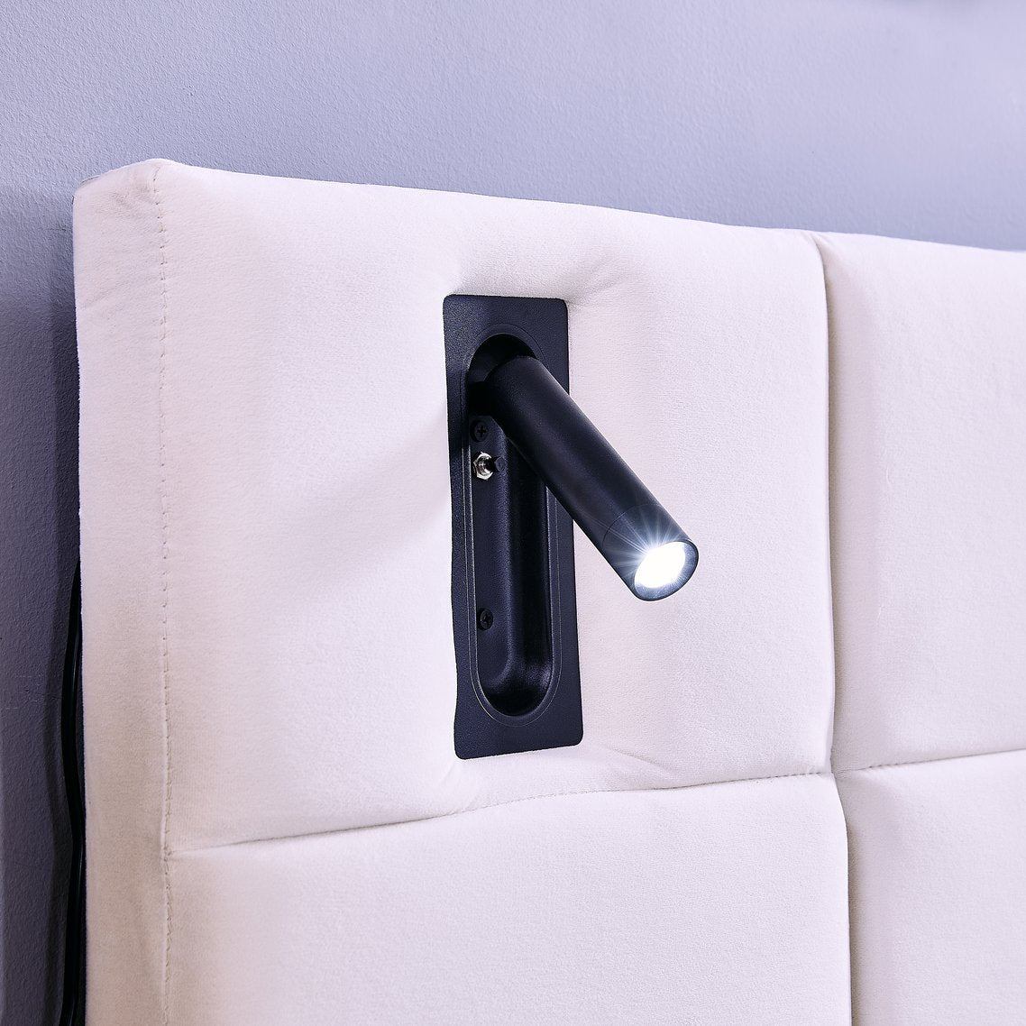 - [Light&USB Ports Design] This upholstered platform bed features 2 lights on the headboard for a bright and futuristic feel in your bedroom. There is also a USB port at the bottom of the light, you can charge your phone on the bed and don't need to get out of bed to find a charging outlet.