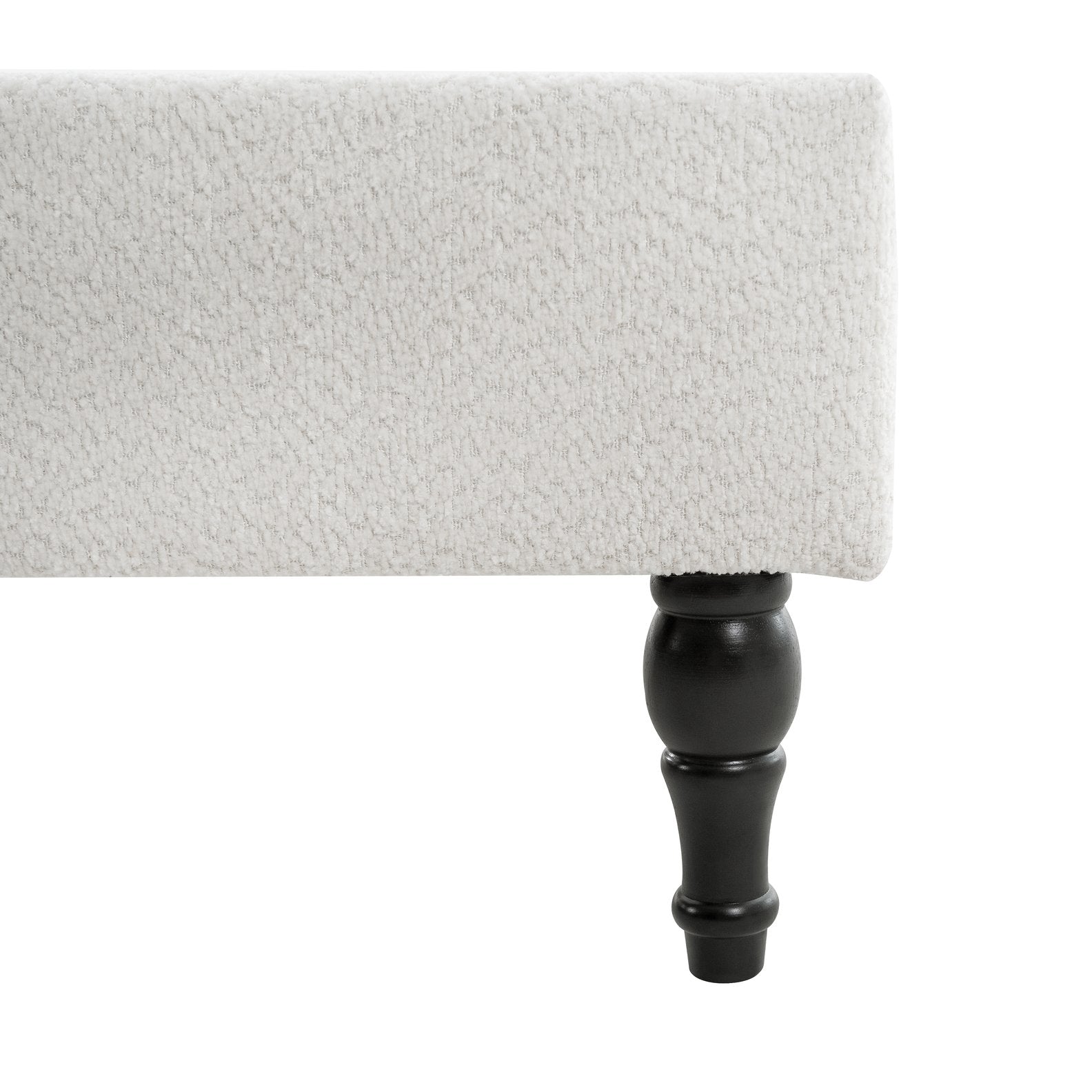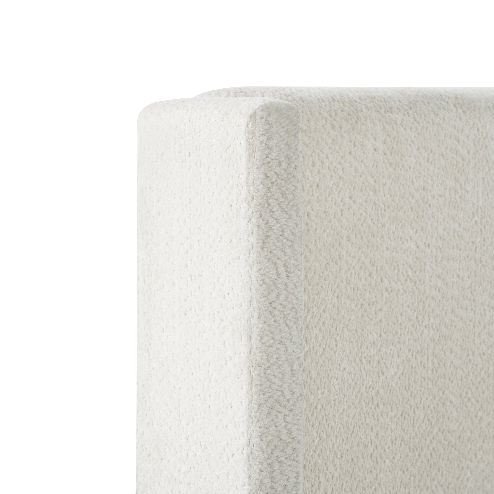 - Upholstery: Soft, textured boucle fabric in white for a cozy, on-trend look that pairs well with neutral or colorful decor
