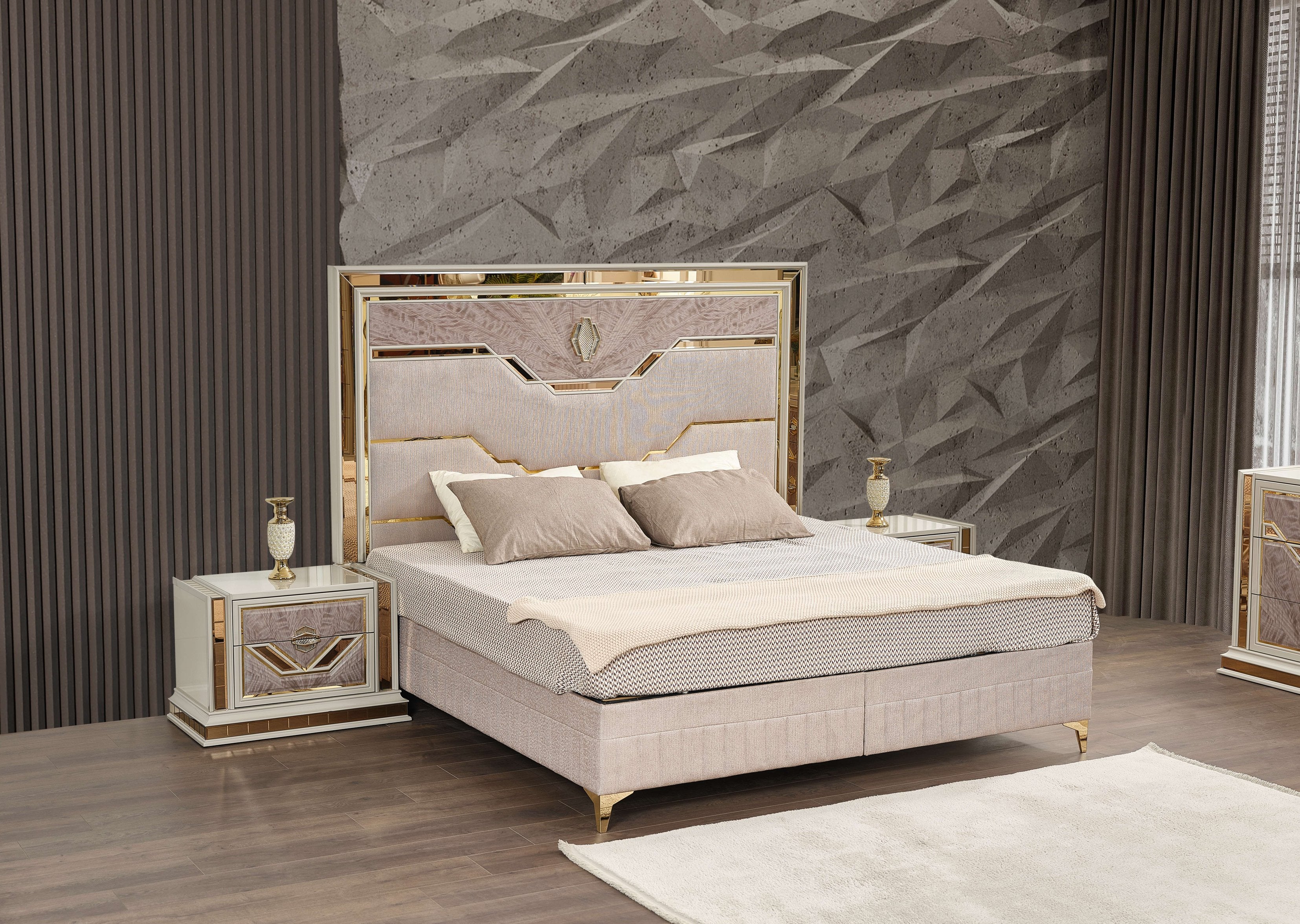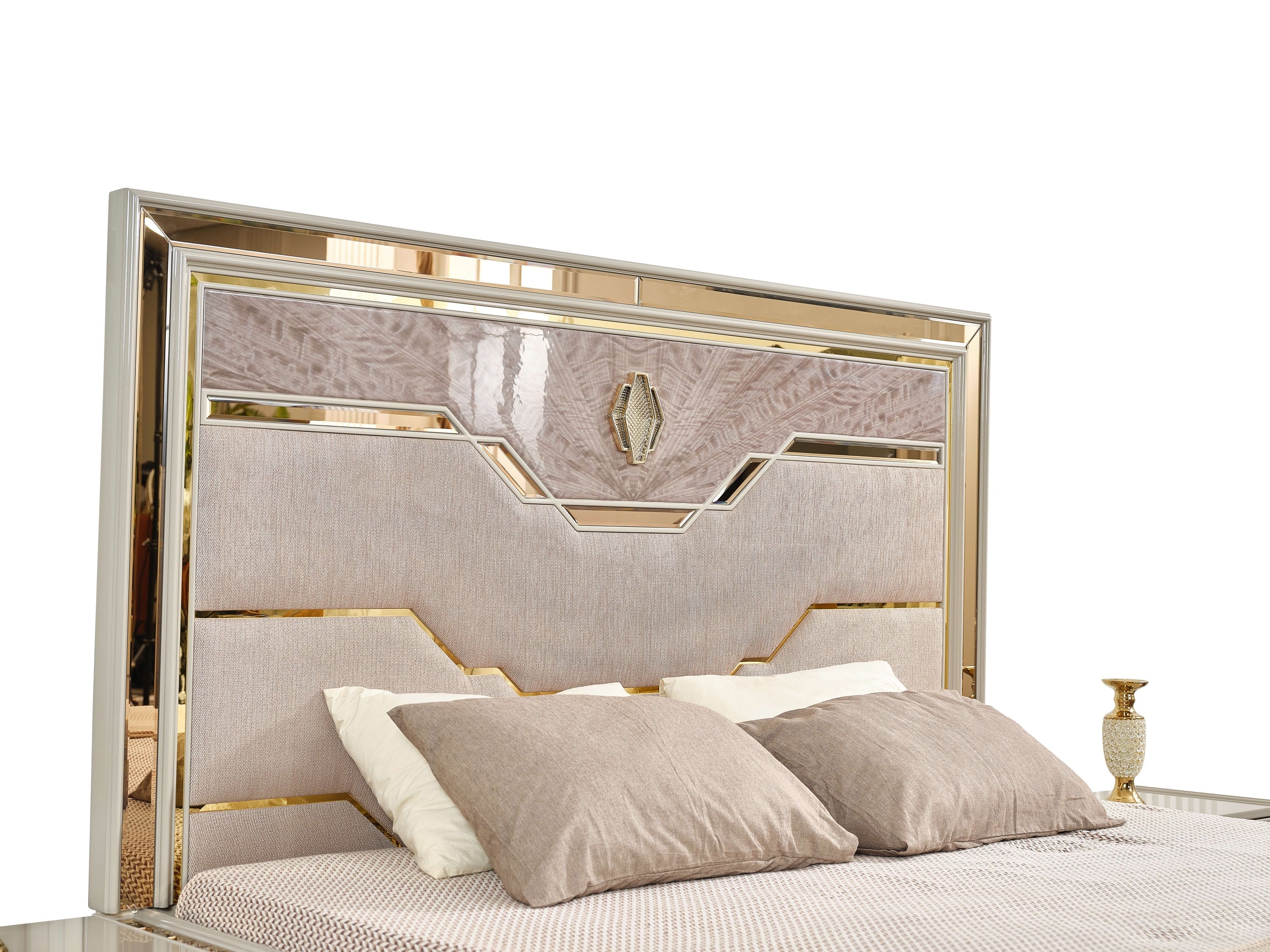 - Upholstery & Finish: Plush beige upholstery on headboard and frame for a cozy, sophisticated appearance