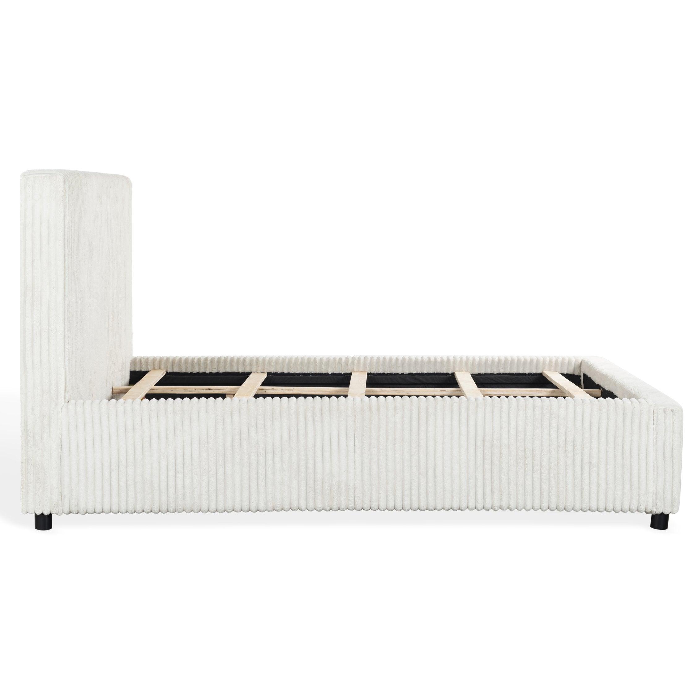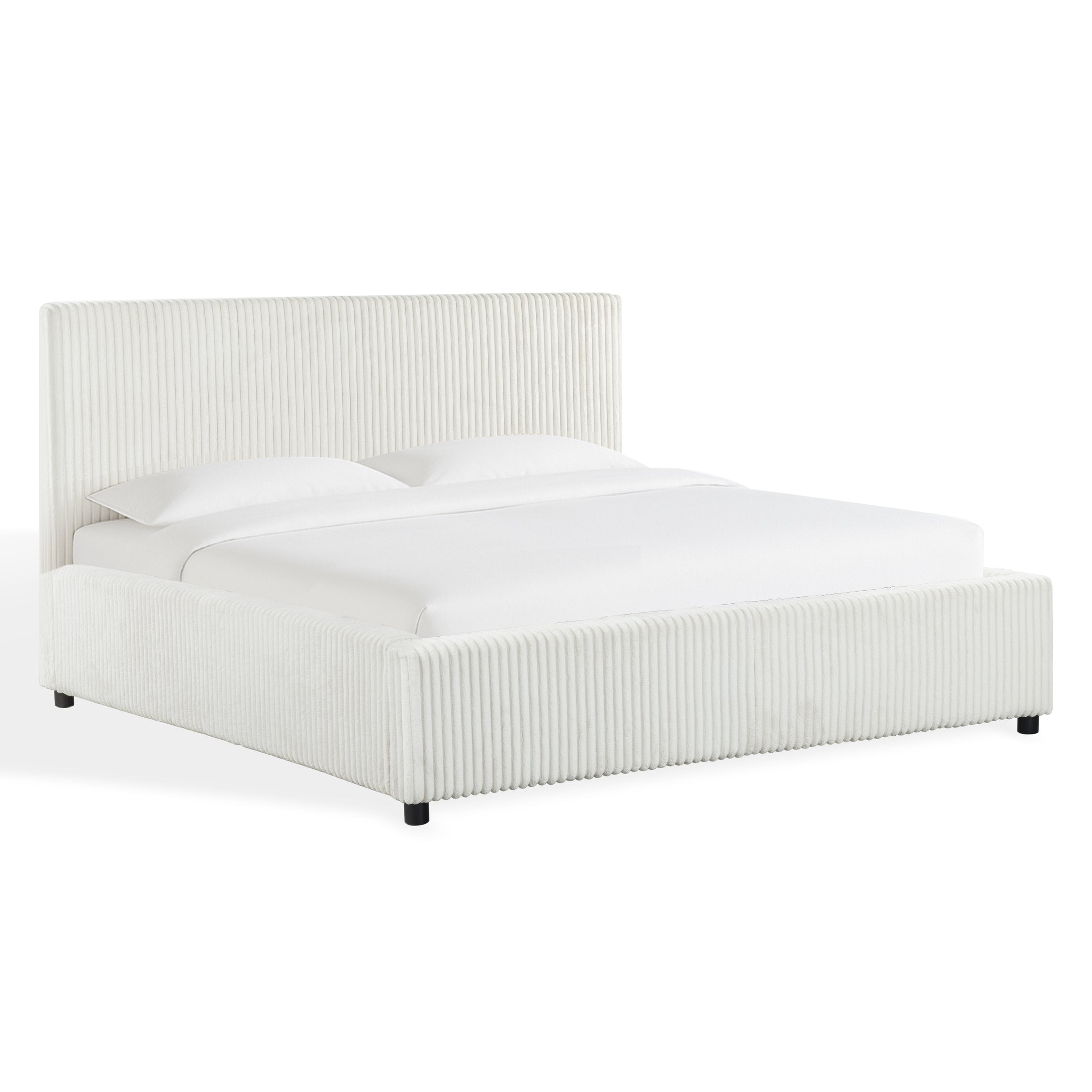 Experience the soft embrace of foam and fabric, carefully chosen to provide you with a cozy retreat. The thoughtfully designed channel tufting adds an extra layer of visual appeal, showcasing attention to detail and style. Whether you're unwinding after a long day or enjoying a lazy morning, this queen bed offers a luxurious escape.