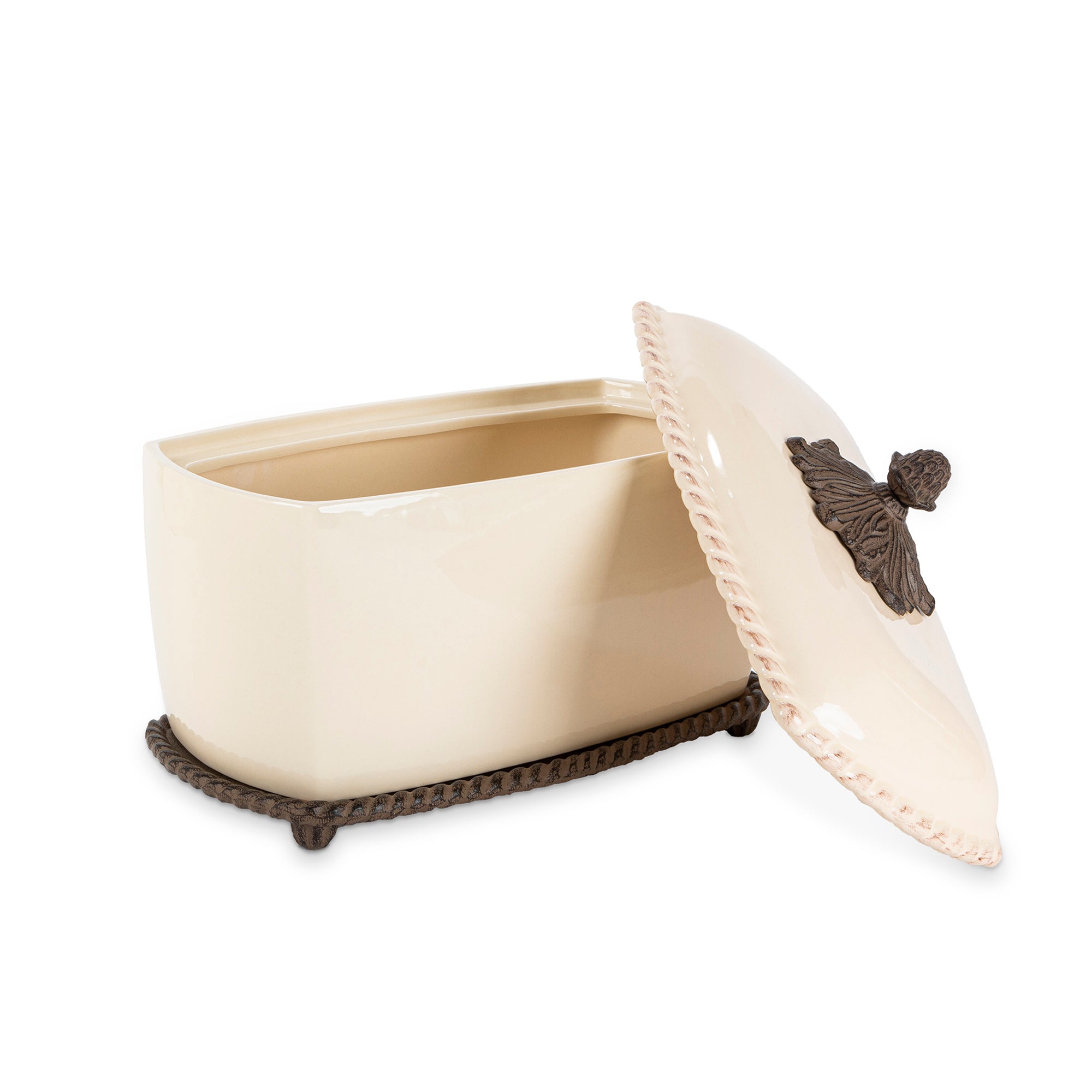 - Color: EAW95326 Acanthus Stoneware Bread Box - Cream