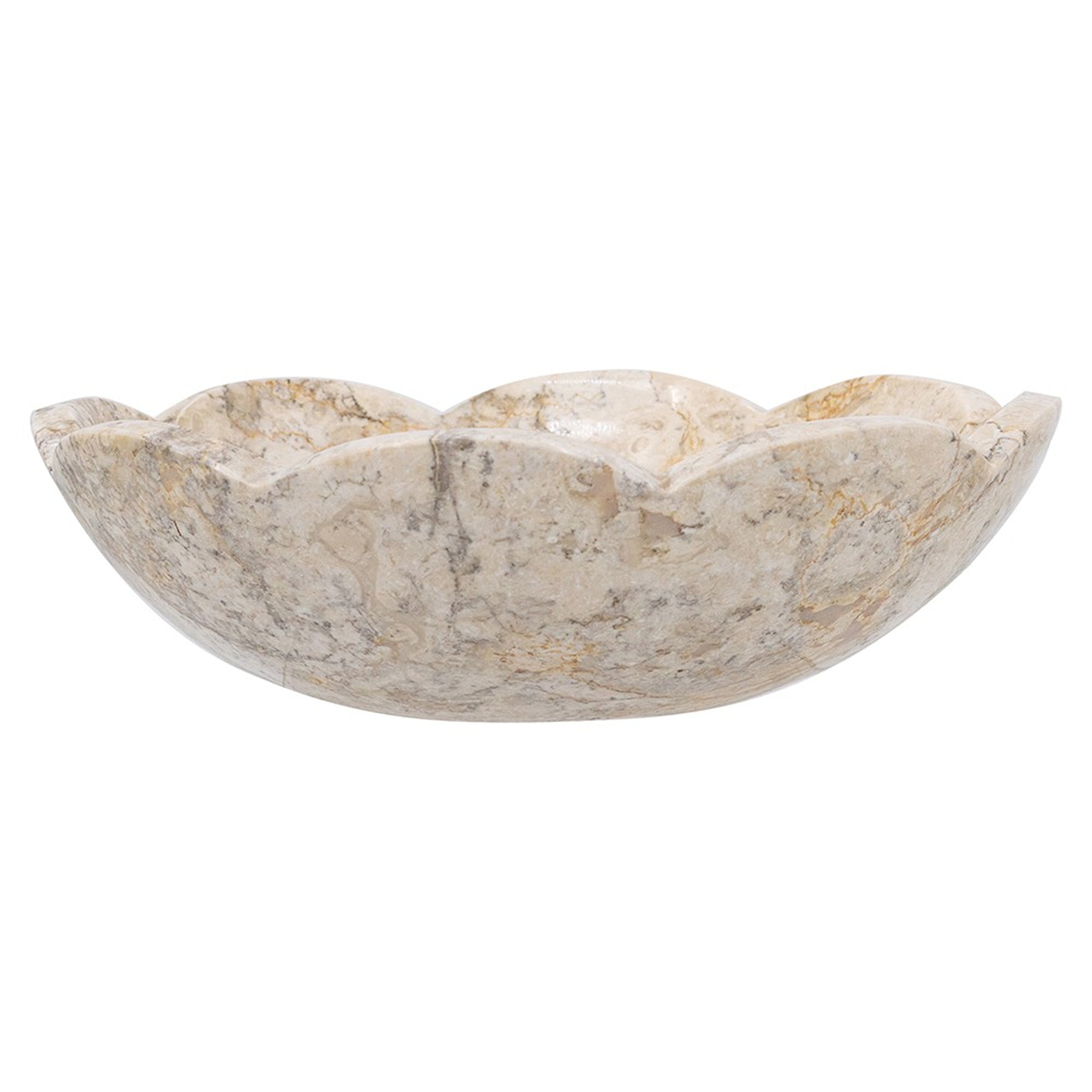 - D10x3" Cream Marble Bowl with Scalloped Design and Subtle Gold Detailing