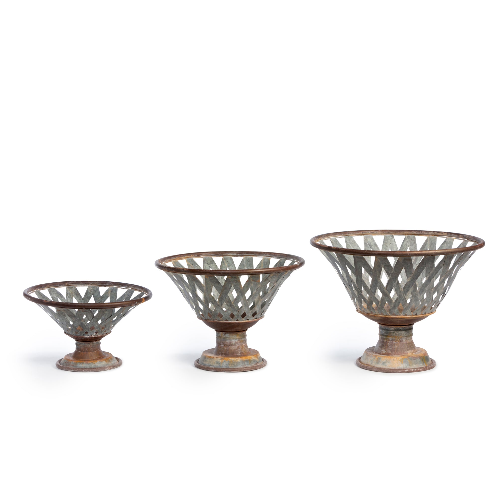 - Color: ECM10298 Woven Metal Footed Bowl, Set of 3 - Distressed zinc