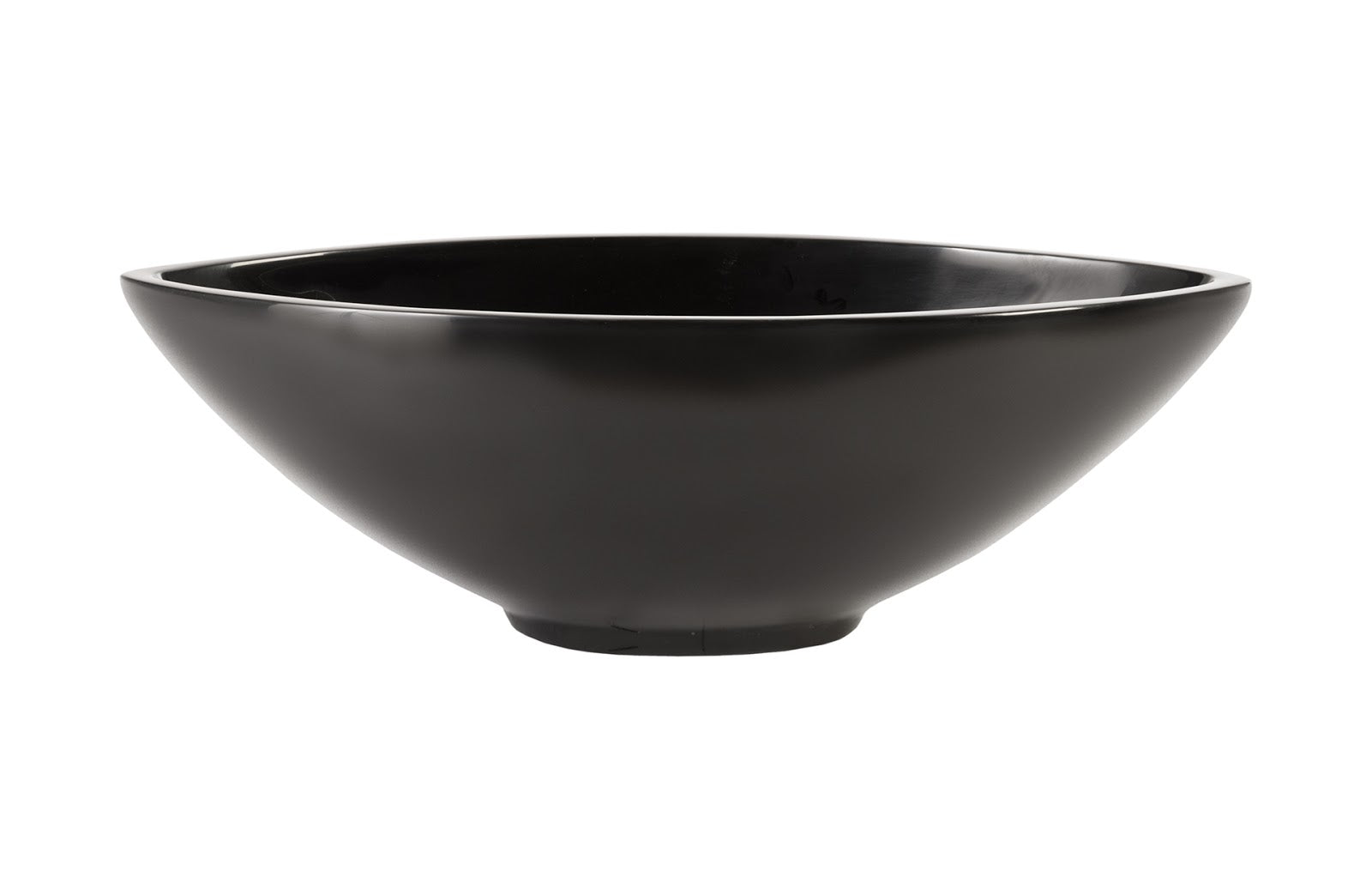 In a classic shape that is centuries old but with pared-down lines and a gleaming gel-coat black finish, the Mata Large Black Bowl reflects the Phillips Collection ethos, which we call modern organic. The black display bowl can be influenced in its stylistic leanings depending upon what decorative elements are placed in it. Leave it empty to keep it consistently contemporary.