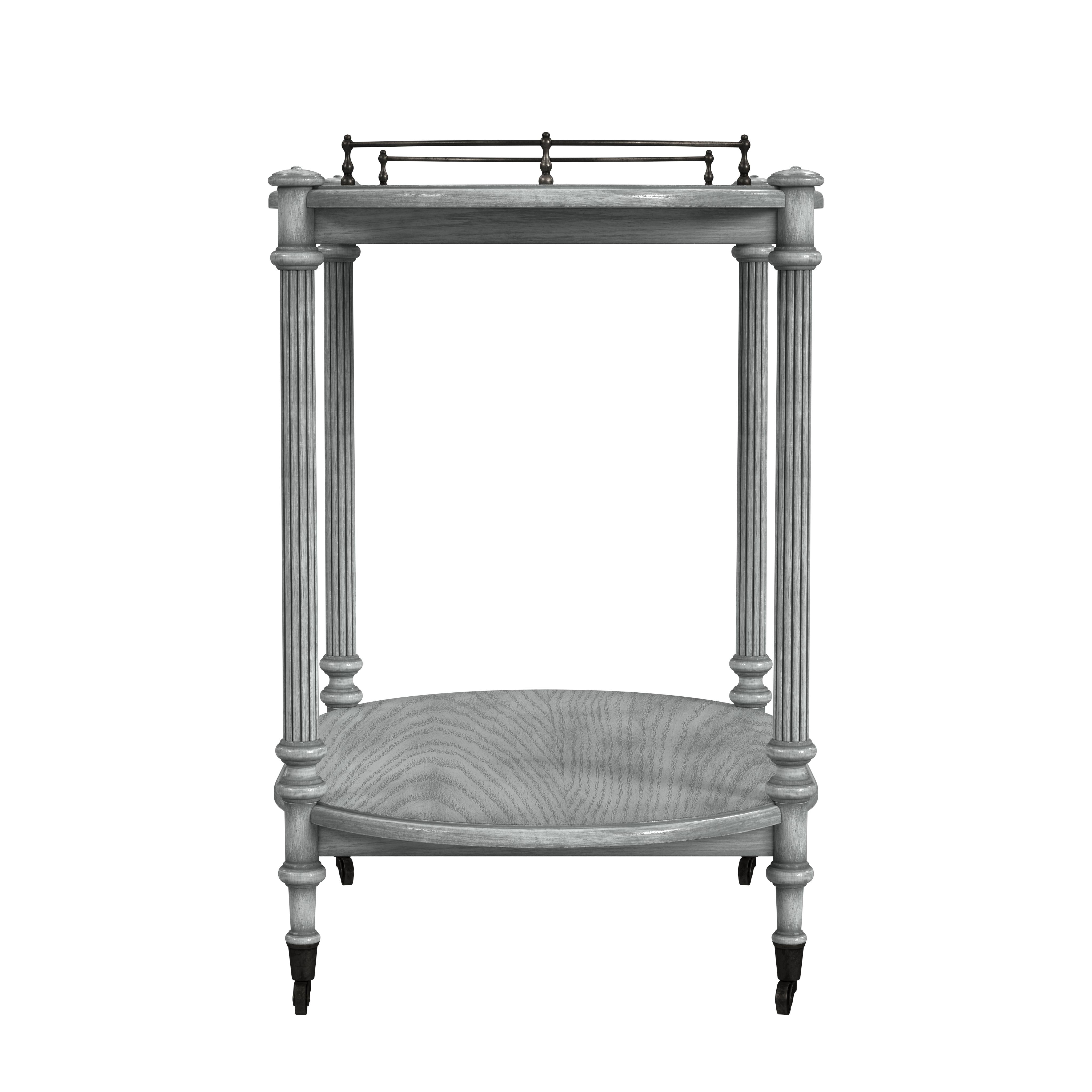- Feature 3: Antique Brass Gallery Edging and Caster Wheels