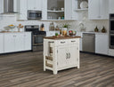 - Rich, slightly distressed kitchen island in white finish with Vintage Oak Top