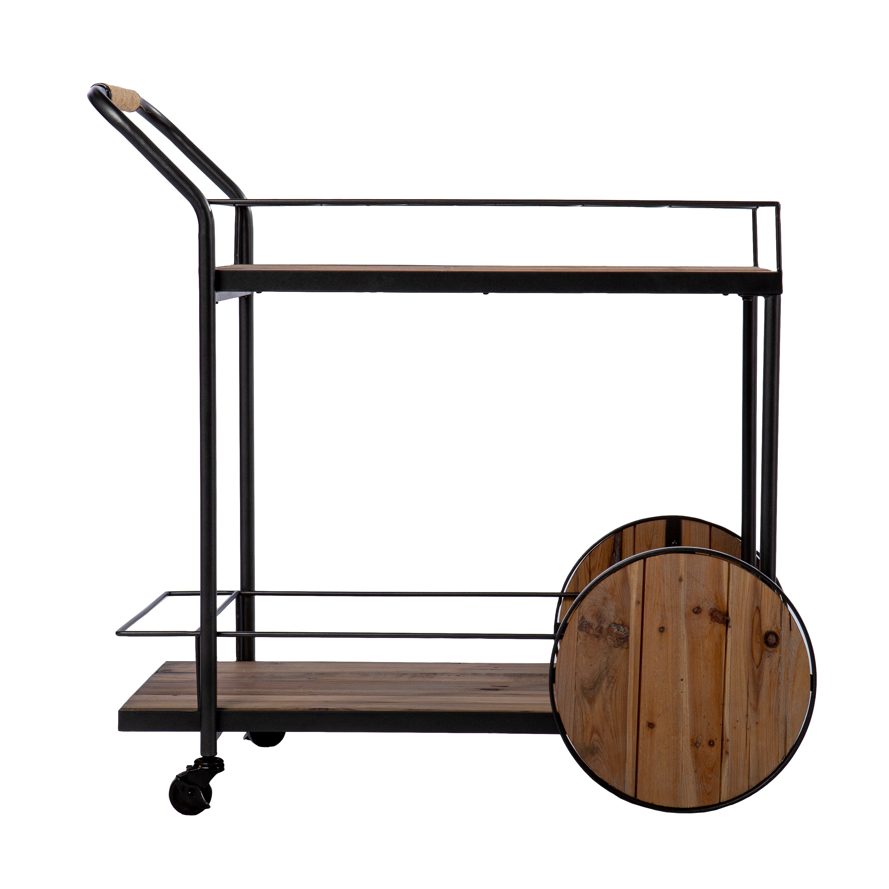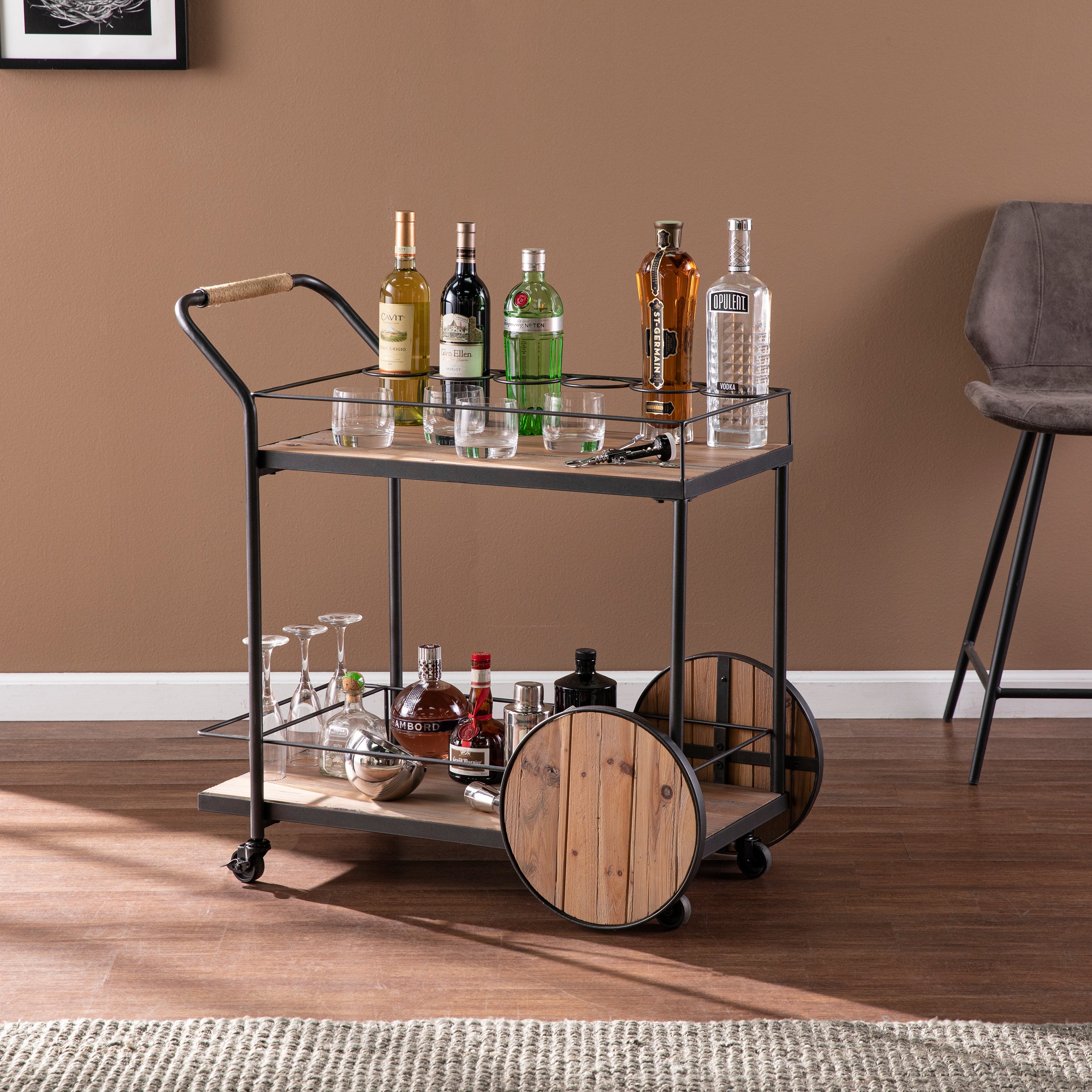 - Feature 1: Reclaimed wood bar cart w/ wheels