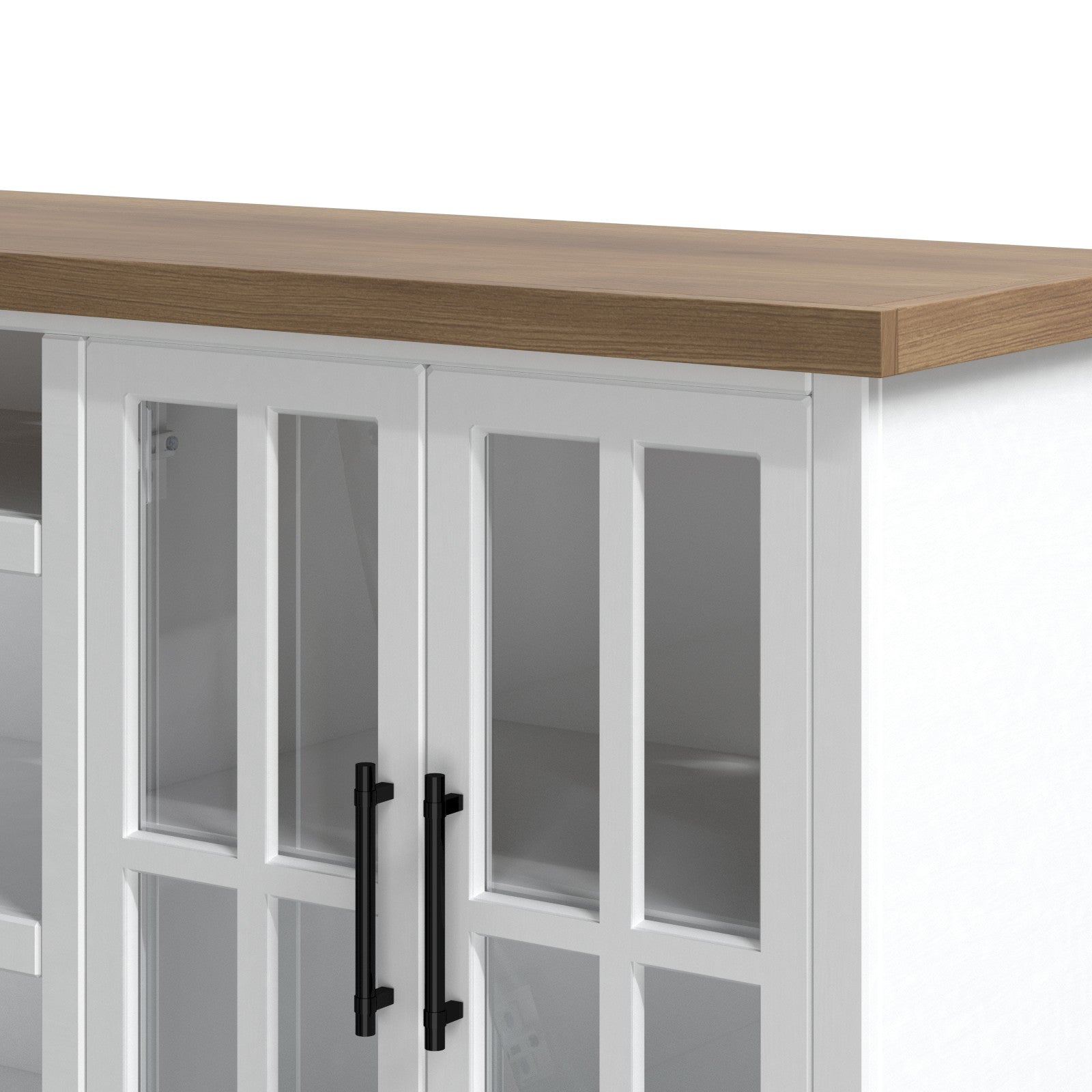 - The shelves behind the doors measure 22-inches wide x 14-inches deep. The space between the shelves is 12-inches