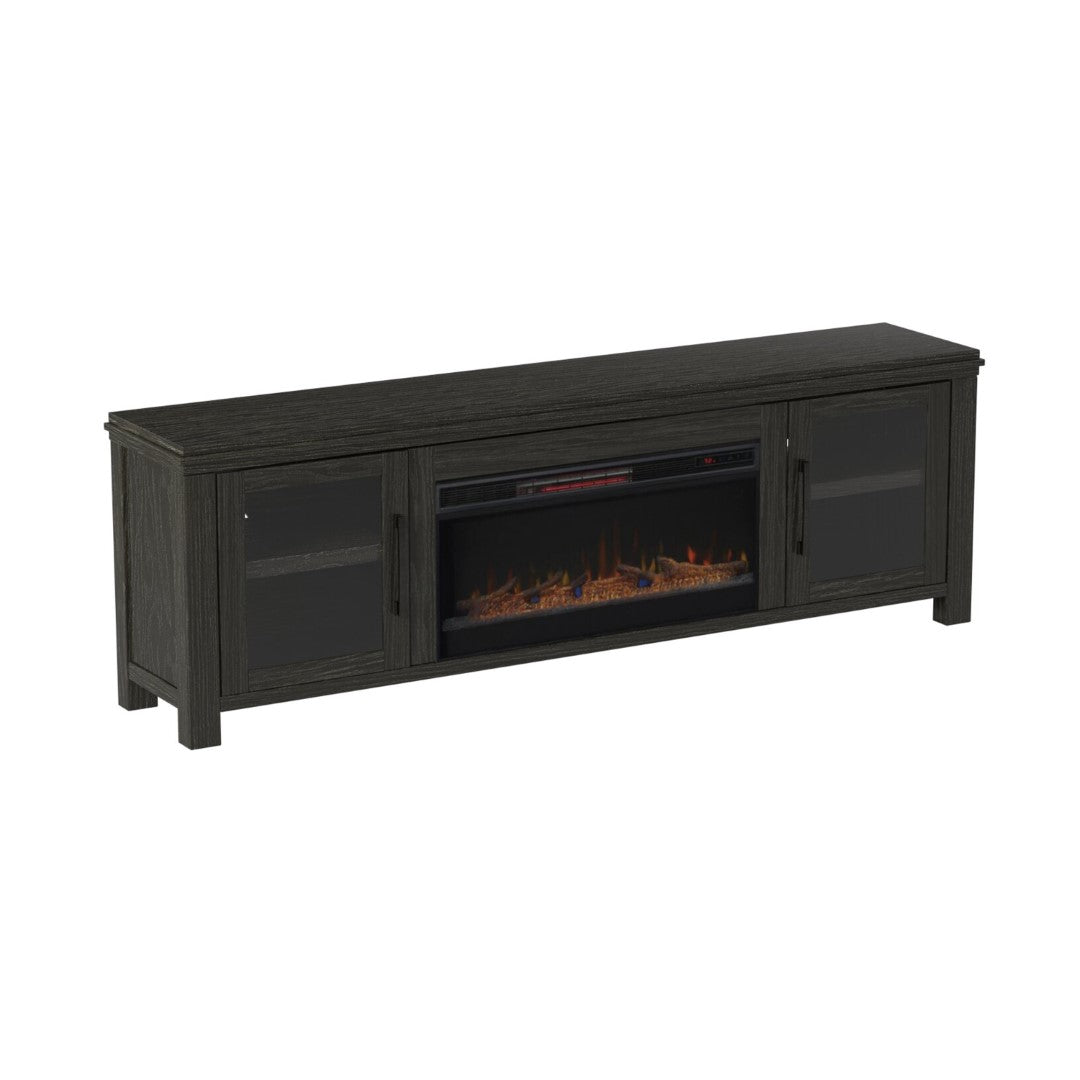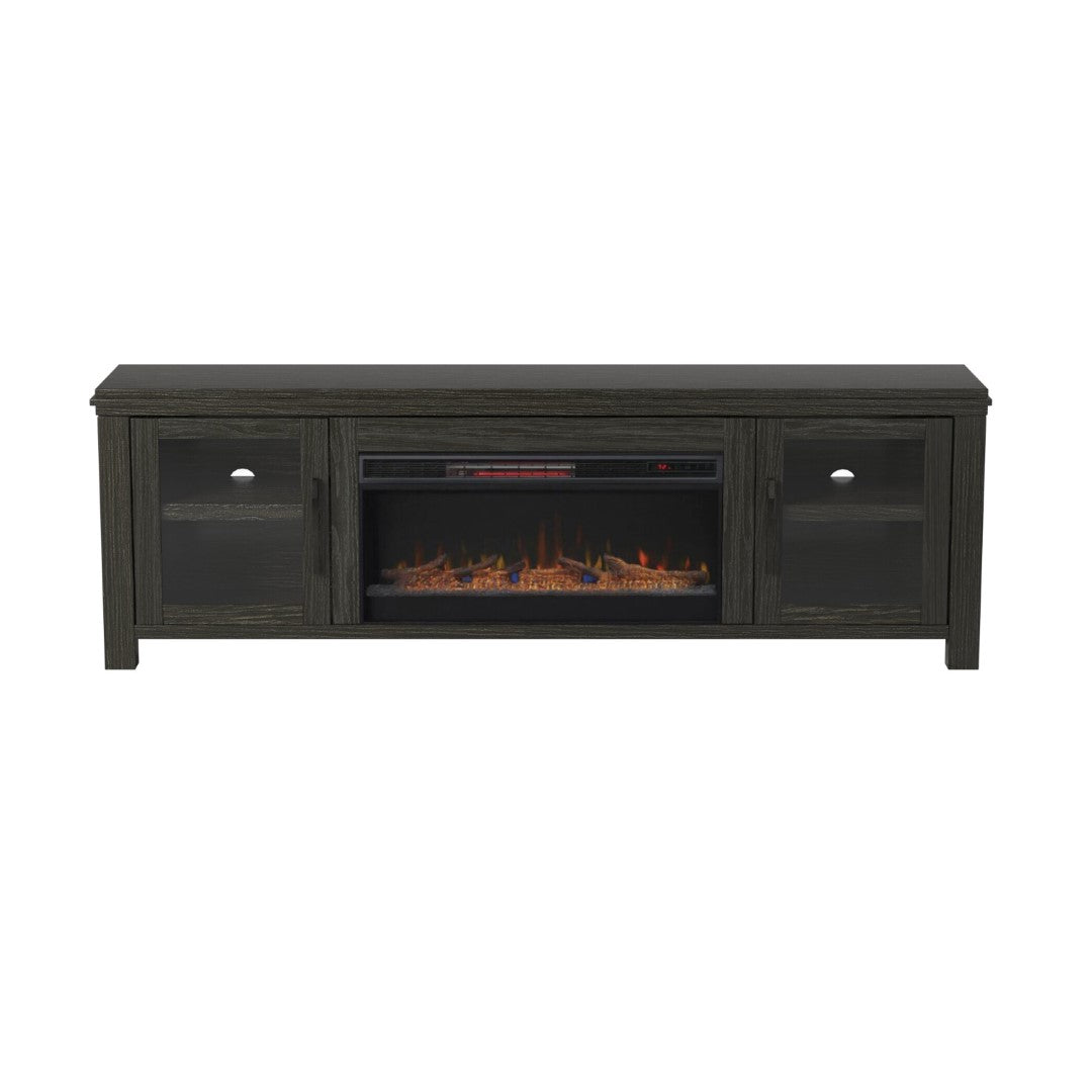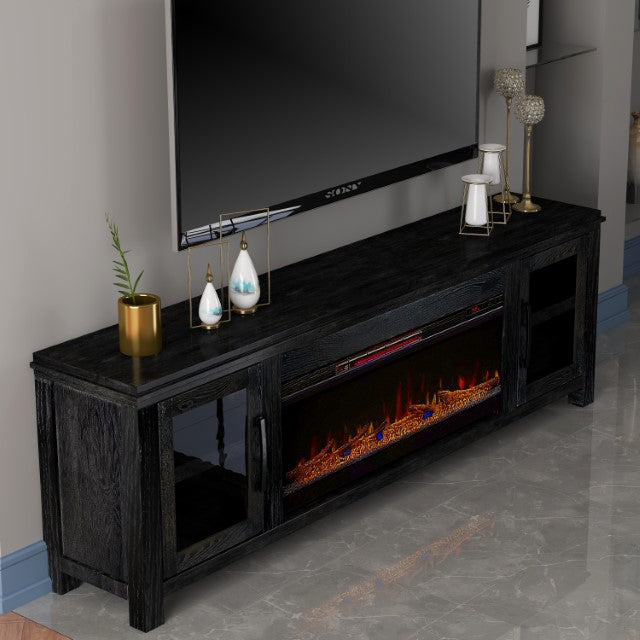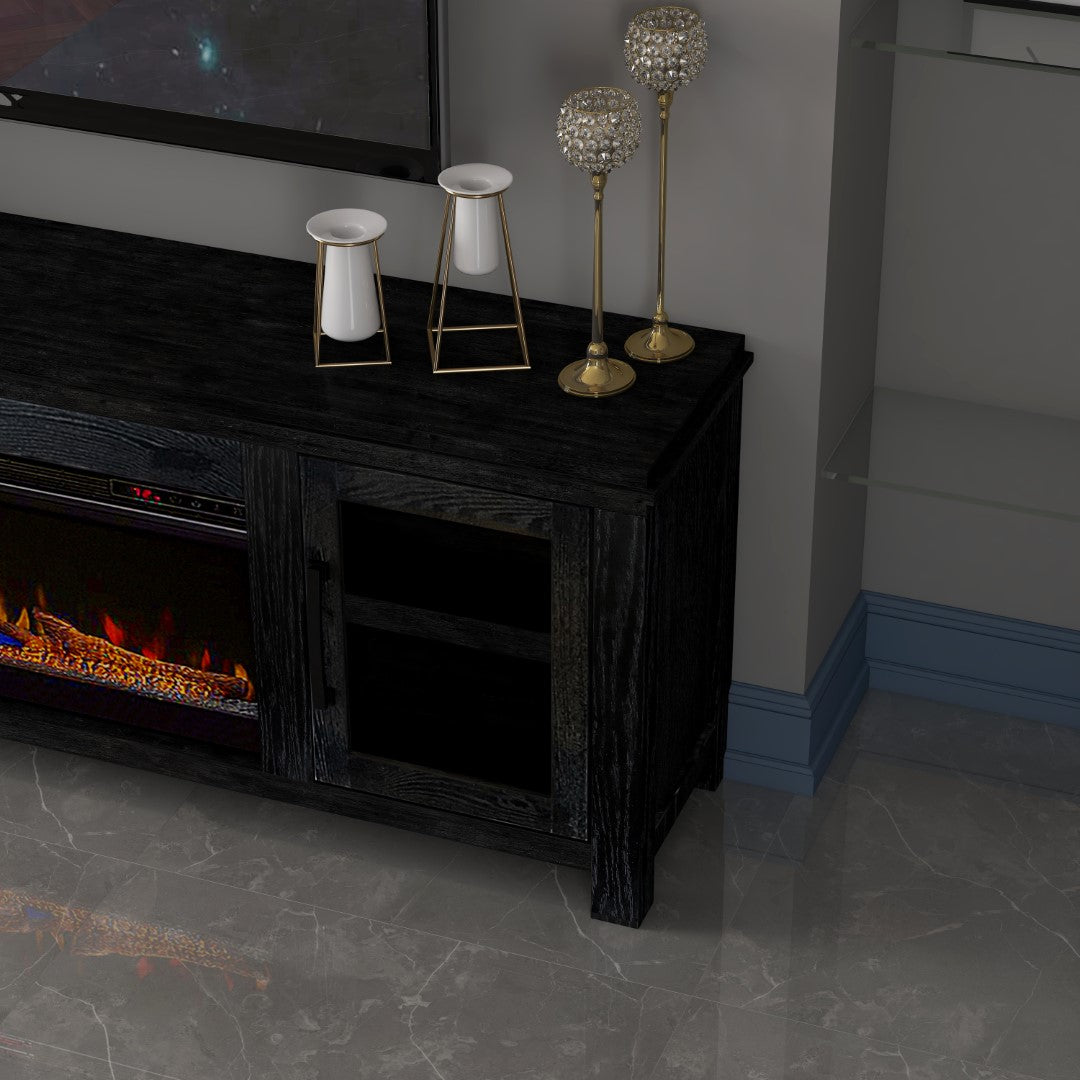 - Feature 1: ELECTRIC FIREPLACE INCLUDED WITH REMOTE – Enjoy the ambiance of the electric fireplace with its realistic flame effect all year long as it can be used with or without heat and make your next movie night a hit. With the space heater heating up to 1000 square feet area, the fireplace TV stand make a great energy efficient heating source. Each fireplace also comes with LED color options as well where you can choose from everyday clear, a blissful magenta, calming blue, and energetic orange to match whatever your mood is. With multiple space heating settings from temperature adjustment, flame intensity levels, and automatic timer function, you can be sure your new fireplace media center can match any setting for any occasion. Plus, you never have to leave the couch as it comes with a remote to control all built in functions.