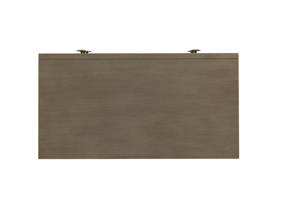 - Beveled face frame and charcoal gray accents add a modern edge.