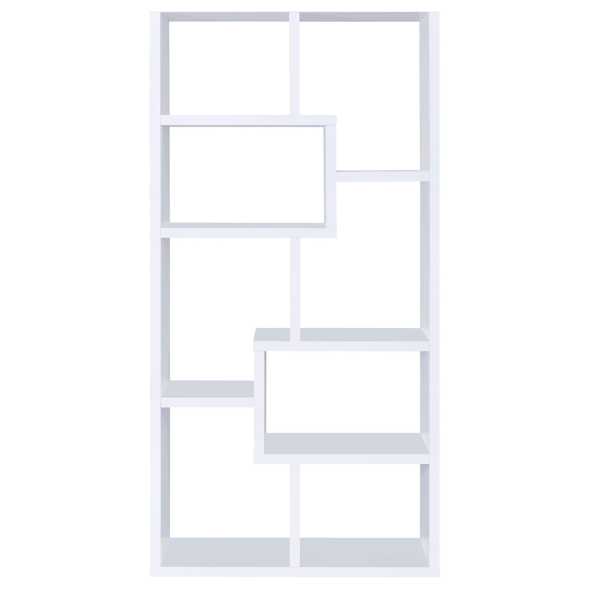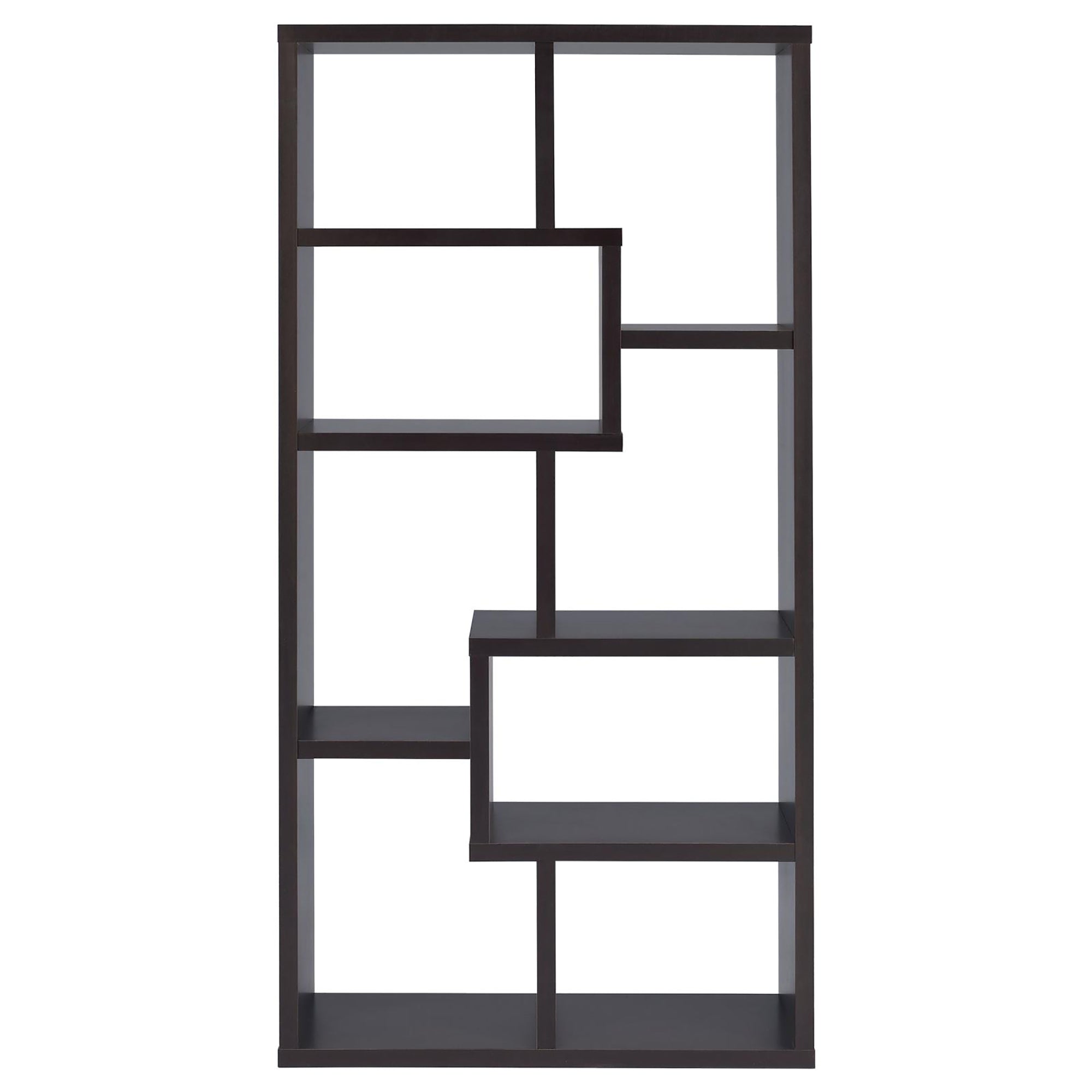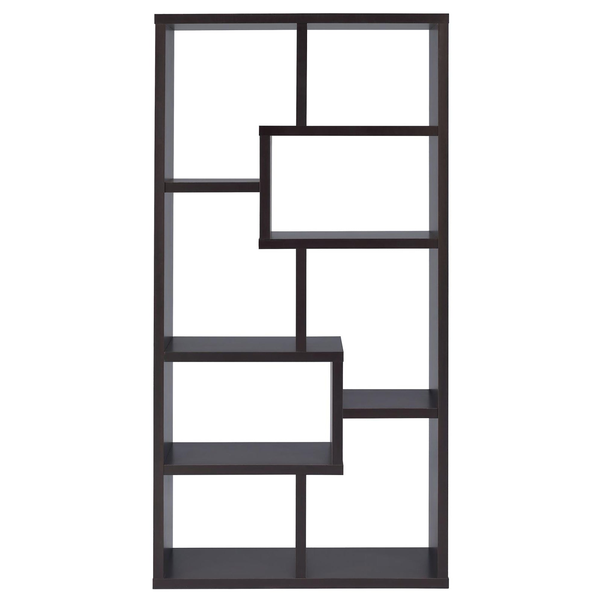 Bring sculptural style and smart storage to your room with this 8-shelf geometric bookcase. Its eye-catching angled design creates pockets of display space perfect for books, framed photos, plants, and collectibles, while the tall, narrow profile makes it ideal for living rooms, home offices, bedrooms, or hallways. Choose this cappuccino finish to add warm, modern appeal and visual texture to your décor.