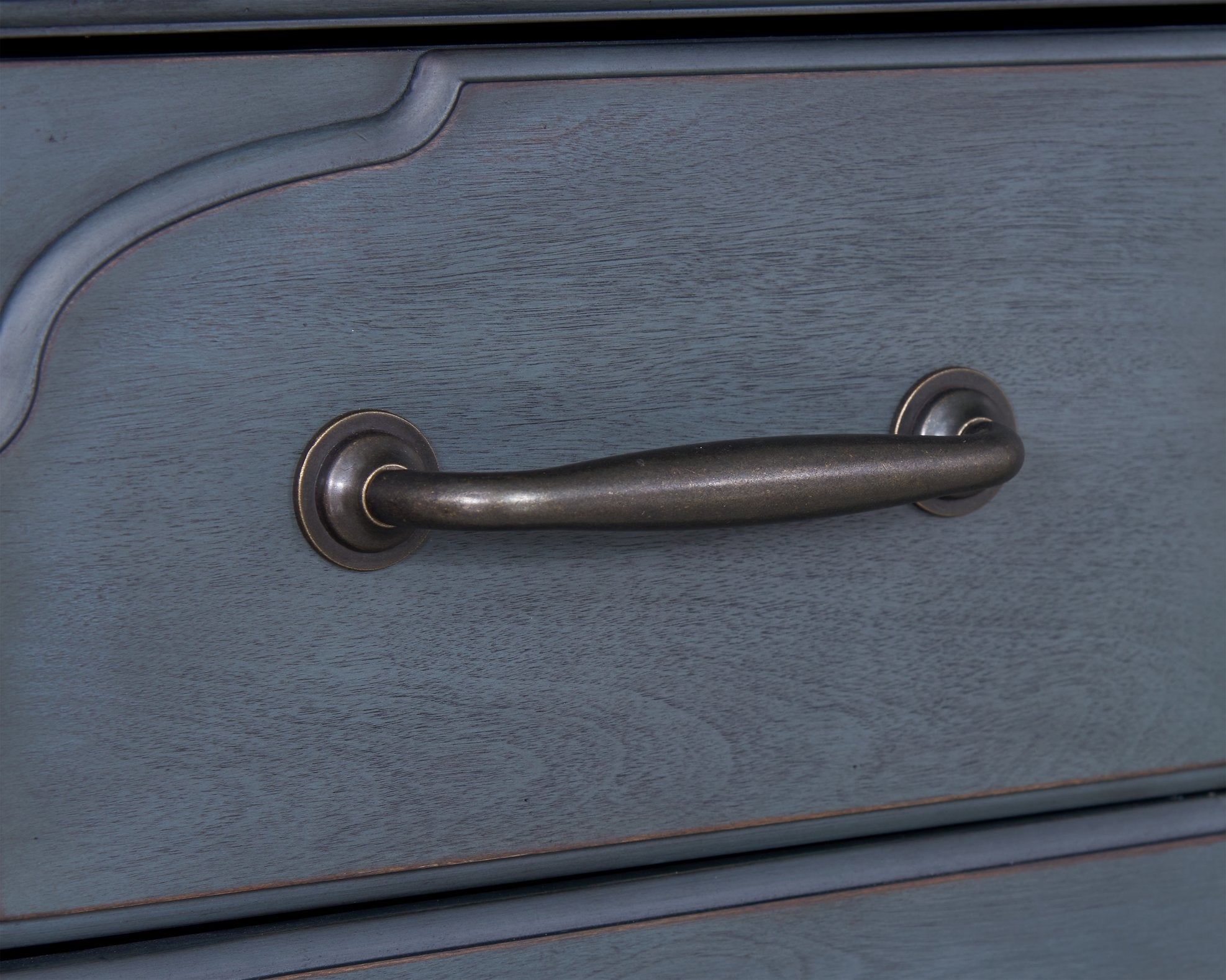 - Finish & Hardware: Subtle distressed Corduroy Blue finish paired with Antique Pewter hardware for a timeless, heirloom look