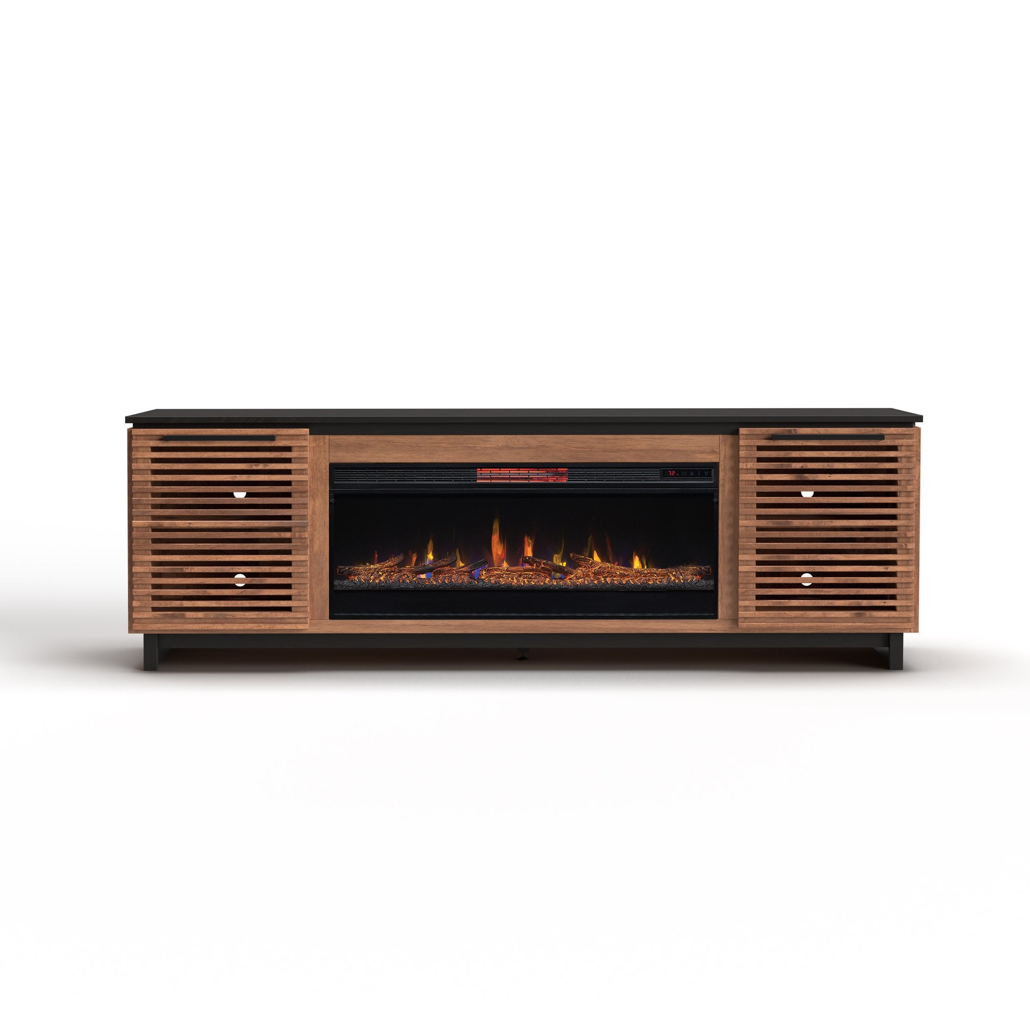 Elevate your living space with this sophisticated 86-inch electric fireplace TV console, designed to blend modern Scandinavian lines with warm, two-tone finishes. Crafted from genuine Poplar solids and Okume veneers in Black with a Bourbon finish, this entertainment center offers generous media storage, tidy cable management, and a powerful electric fireplace insert to create a cozy focal point for family rooms and great rooms.