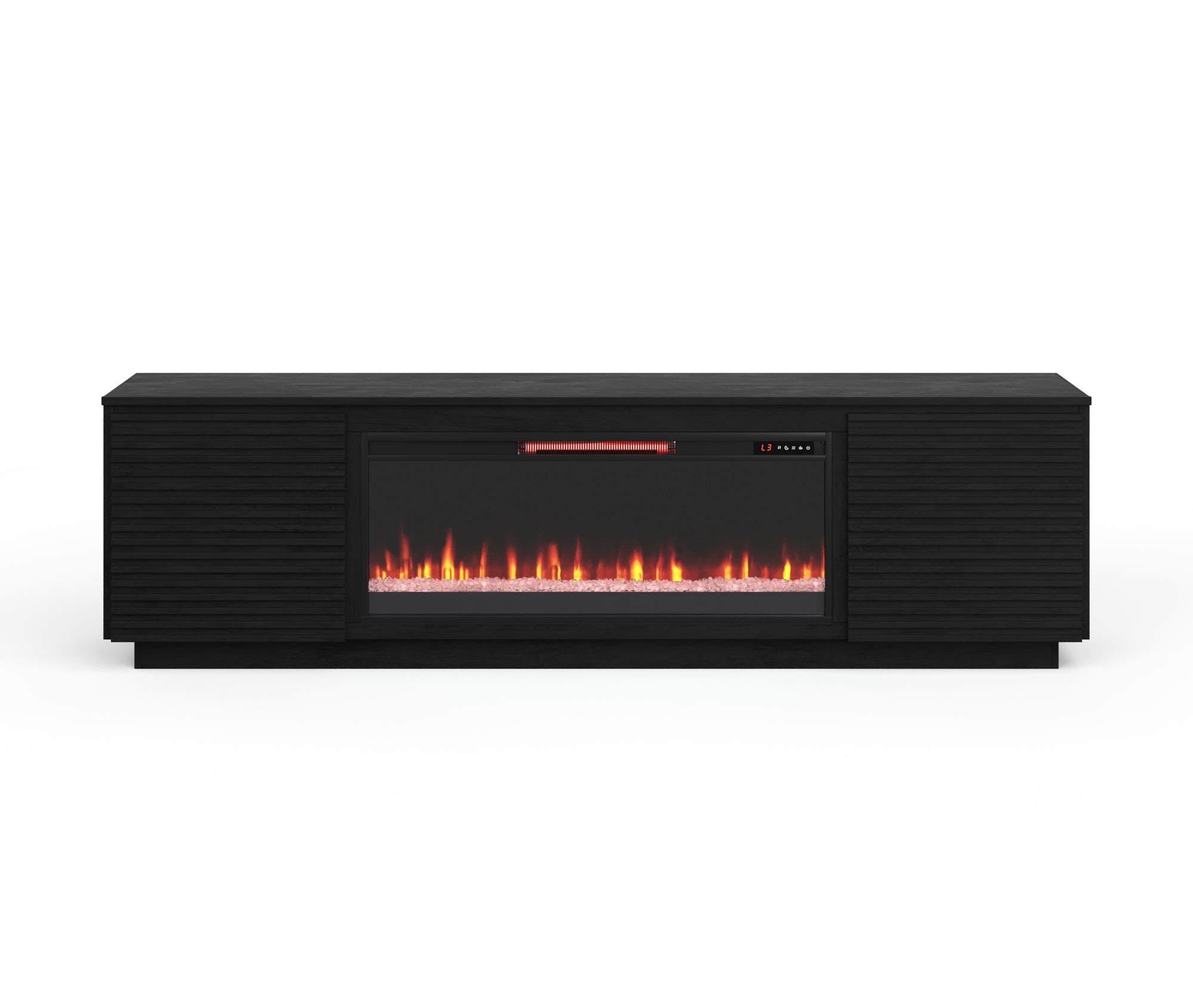 Elevate your living space with a sleek, modern centerpiece that combines media storage and cozy ambiance. This 89 inch fireplace TV stand pairs clean architectural lines and a rich black finish with practical features designed for large TVs and contemporary media setups. Built with solid construction and a high-quality veneer, it creates a polished focal point while keeping cords and components organized for a streamlined appearance.