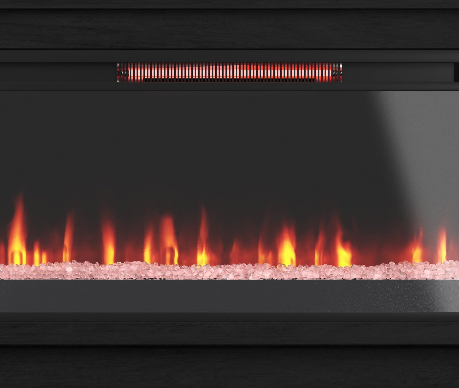 - Fireplace insert with crystals or faux logs and 7 flame color options, 42” wide x 17” deep x 17” high, Heats up to 400 square feet