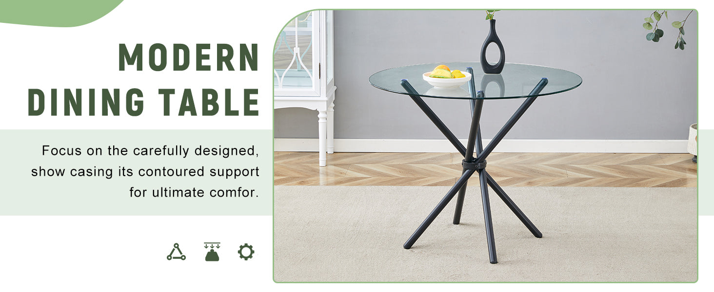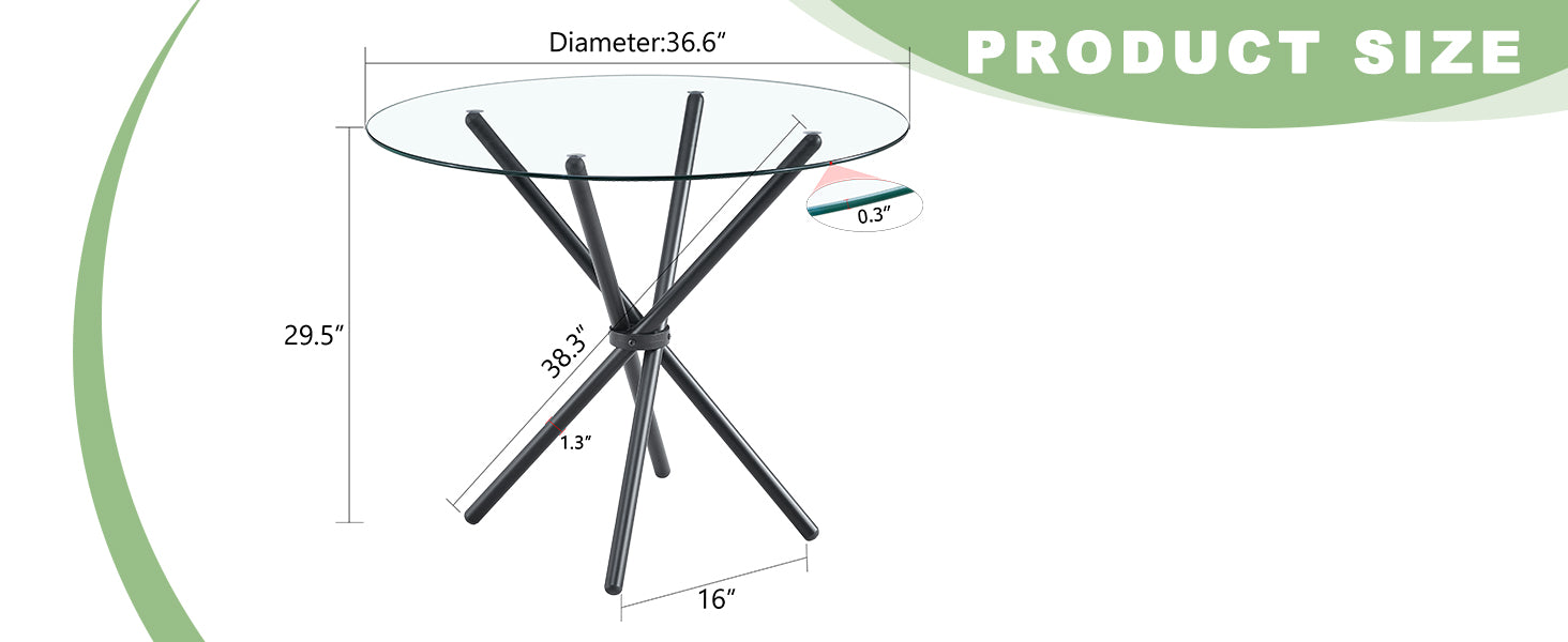 - Round Tempered Glass Table Top: Made with round transparent tempered glass, the edges are finely polished to ensure safety and ease of cleaning, durable and sturdy.