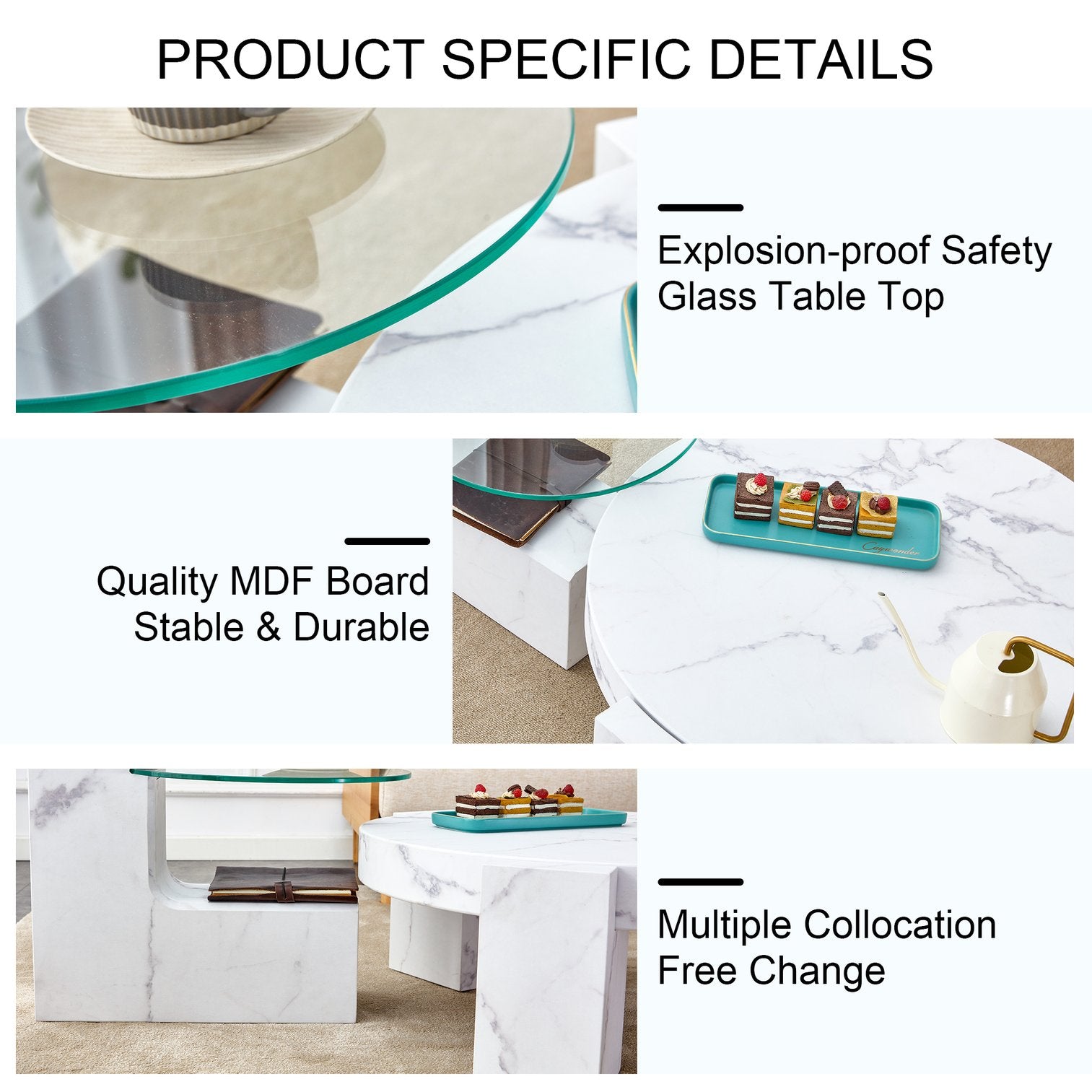 Elevate your living space with a contemporary marble-textured coffee table and matching side table set that blends modern style with everyday durability. Finished in a clean white imitation marble, this set offers a sleek focal point for living rooms or bedrooms while remaining practical—scratch-resistant, easy to clean, and designed for safe, comfortable use.