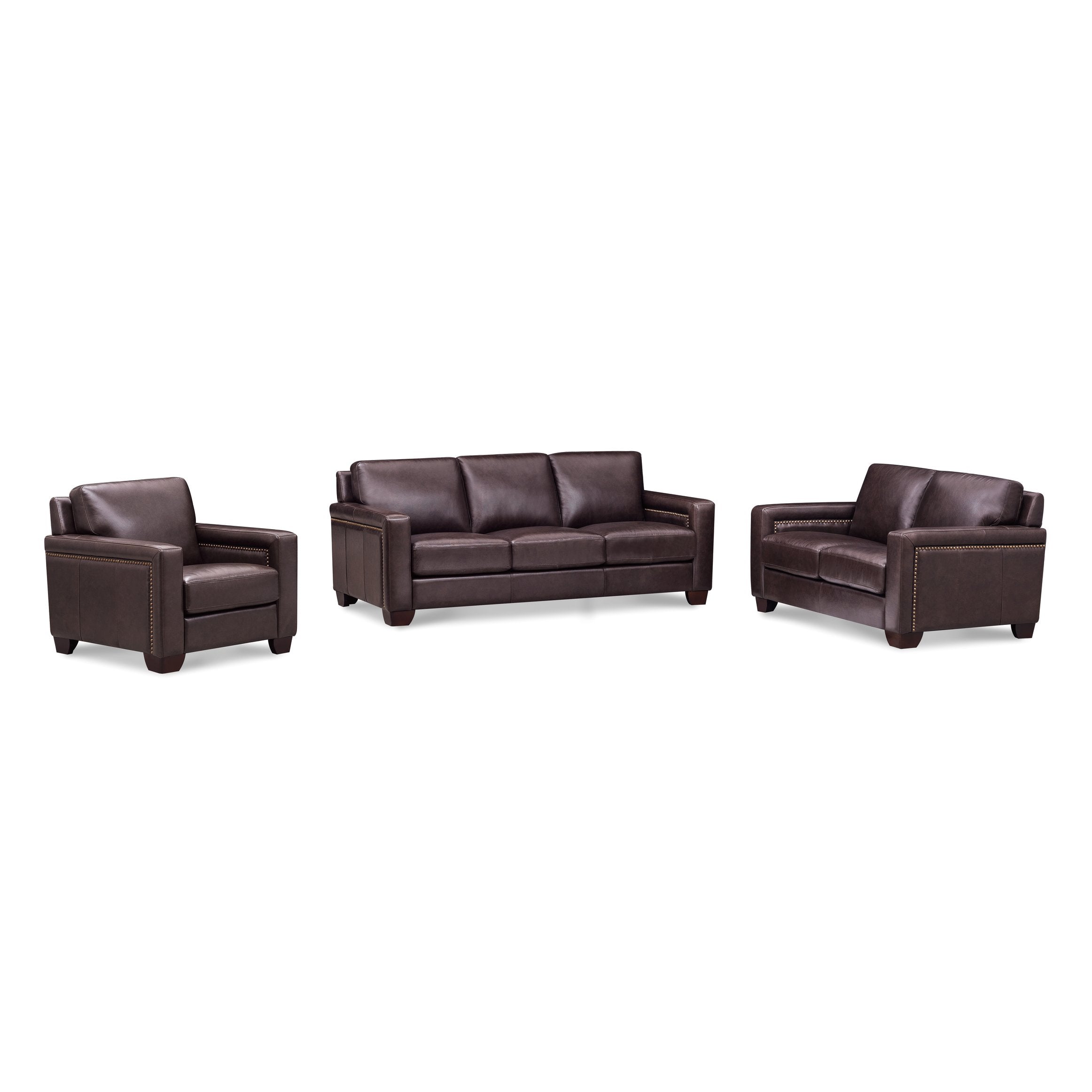 - Premium Leather Finish: Top-grain leather on seating areas and armrests for a soft, durable touch; split-grain leather on sides and back for a consistent, upscale look.
