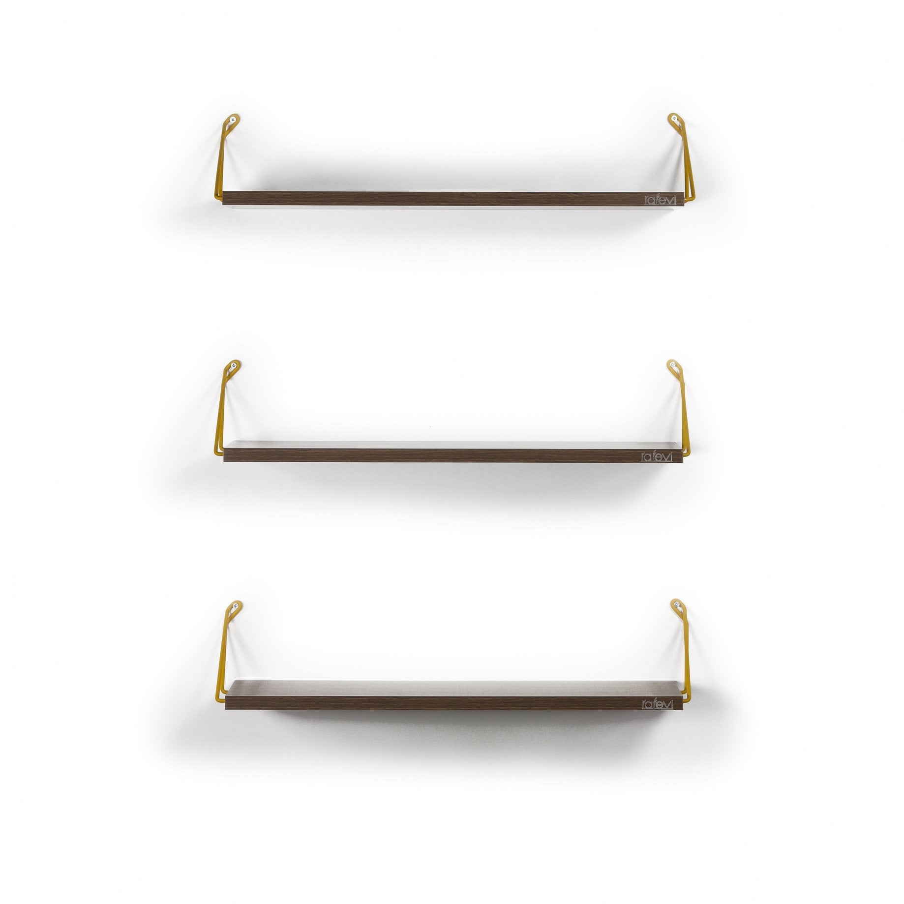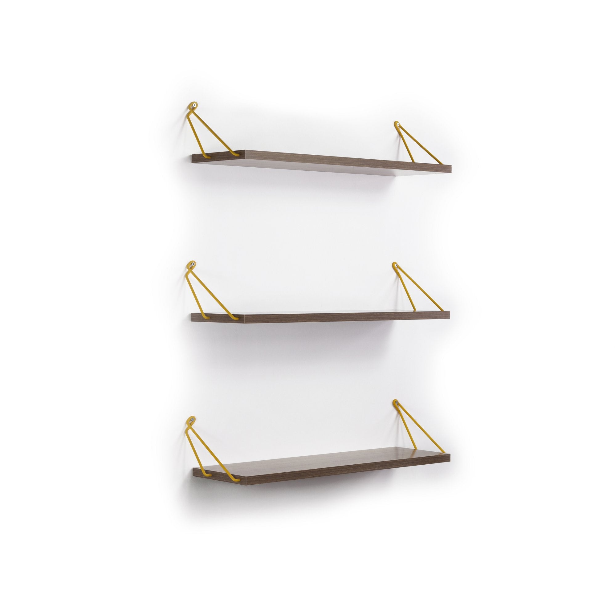 Add rustic charm and smart storage to any room with this Altai floating wall decor featuring three slim, wall-mounted shelves. Crafted from solid wood with a warm walnut finish and supported by a durable metal bracket in yellow, this piece blends farmhouse character with modern minimalism to display books, small plants, photos, or collectibles without taking up floor space.