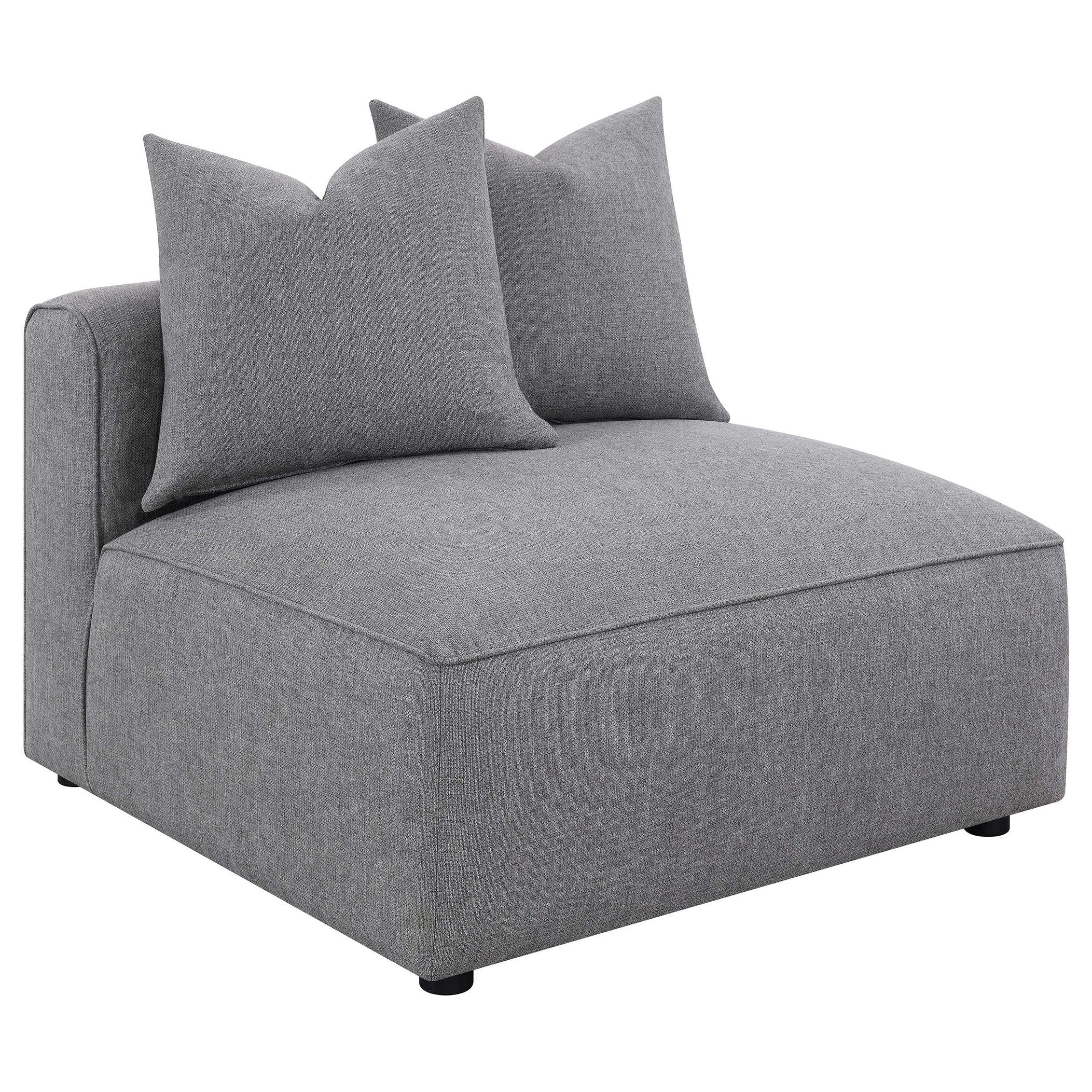 Transform your living room into a versatile, stylish entertainment hub with the Amherst six-piece modular sectional. Thoughtfully designed for comfort and flexibility, this set combines clean lines, generous cushioning, and durable woven grey upholstery to deliver a contemporary centerpiece that adapts to your space and lifestyle.
