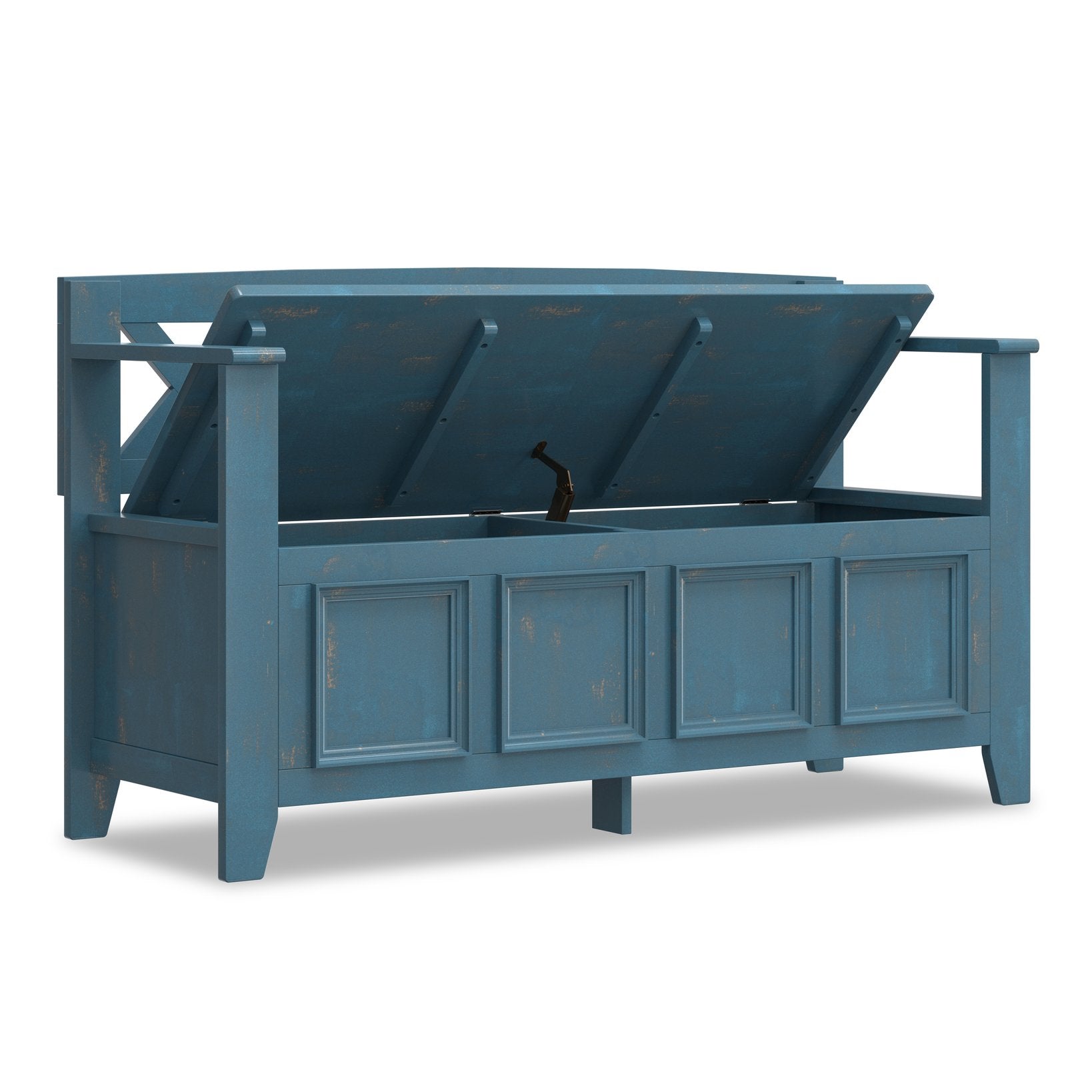 Add a welcoming, functional focal point to your entryway with this coastal-inspired storage bench. Designed for compact spaces without sacrificing capacity, it pairs comfortable seating with discreet storage to keep shoes, blankets, and everyday clutter neatly organized. Its distressed Coastal Blue finish and solid pine construction offer a timeless, rustic look that complements farmhouse, coastal, or cottage interiors.