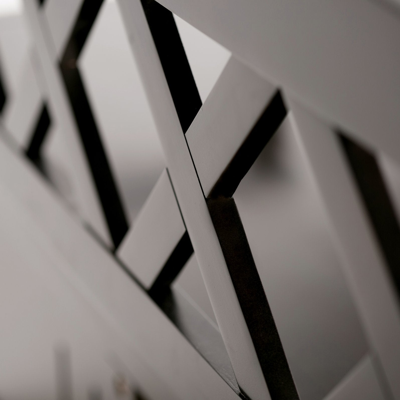 - Design Details: Transitional styling with library-framed square front panels and X-shaped back and side accents for visual interest