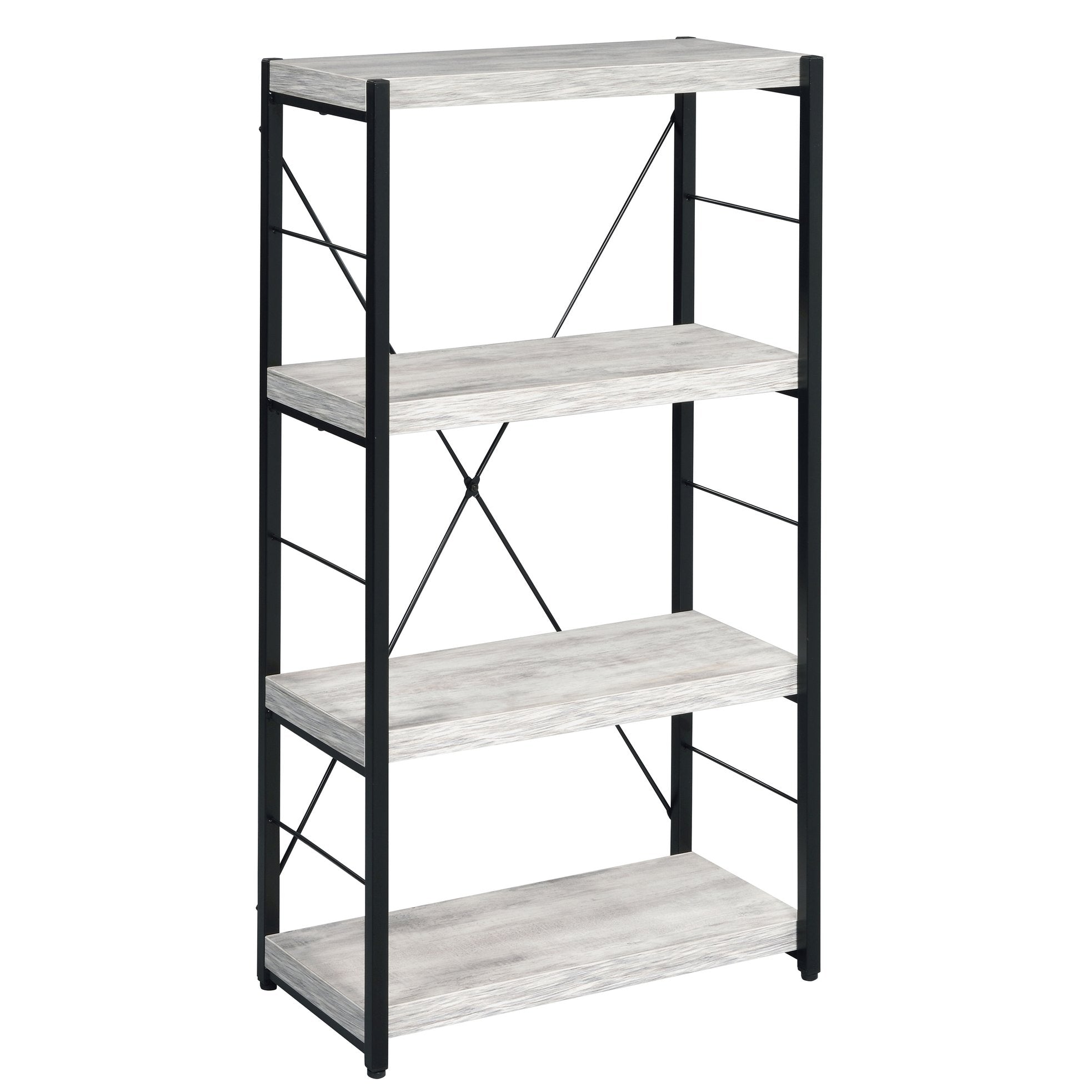 Bring modern industrial charm and practical storage to your home with this Antique White and Black 3-shelf bookcase. The contrasting metal sled frame and faux concrete-look shelves create a contemporary statement while the warm wood tones and sturdy construction keep the piece approachable and functional. Ideal for displaying books, decor, or office essentials in a living room, home office, or study.