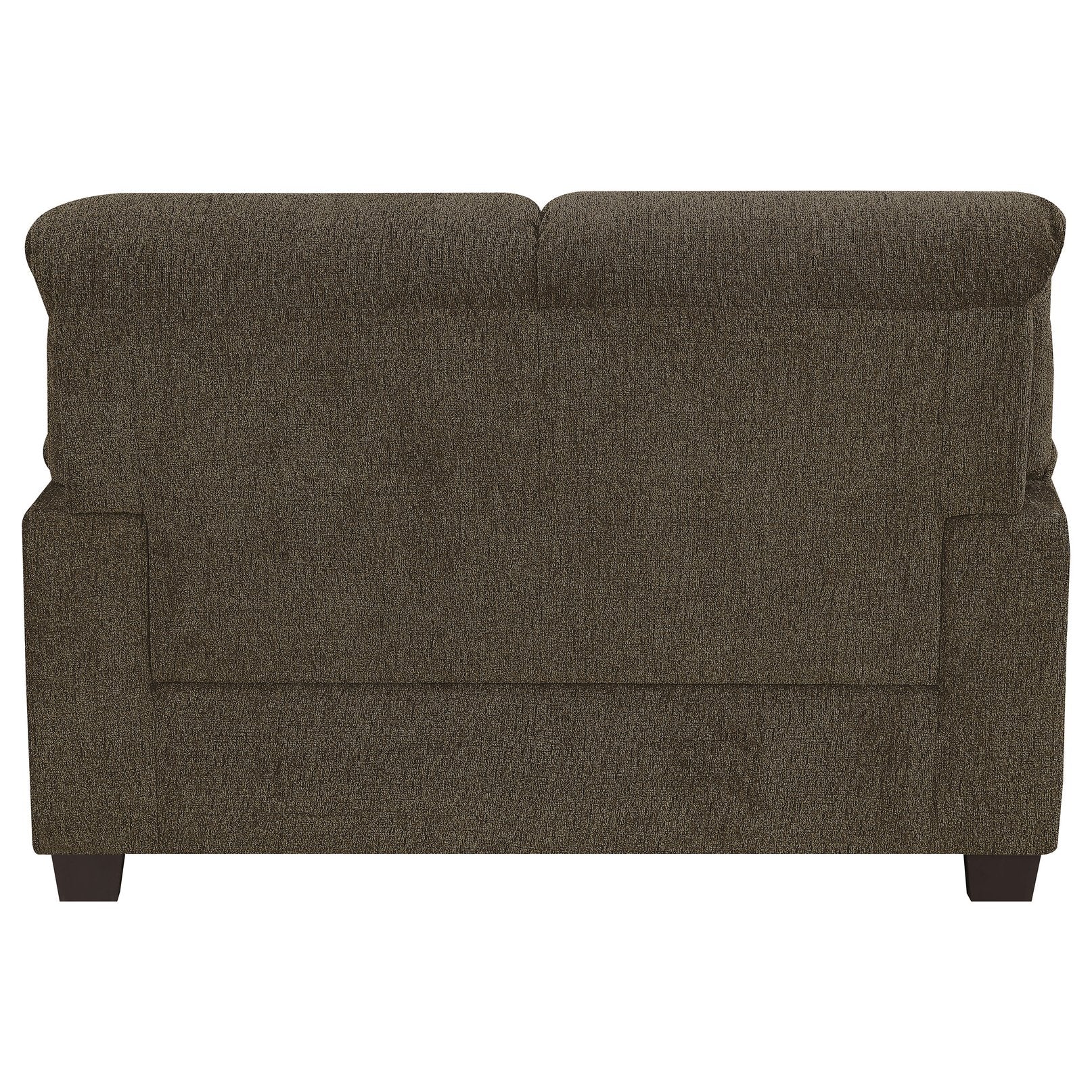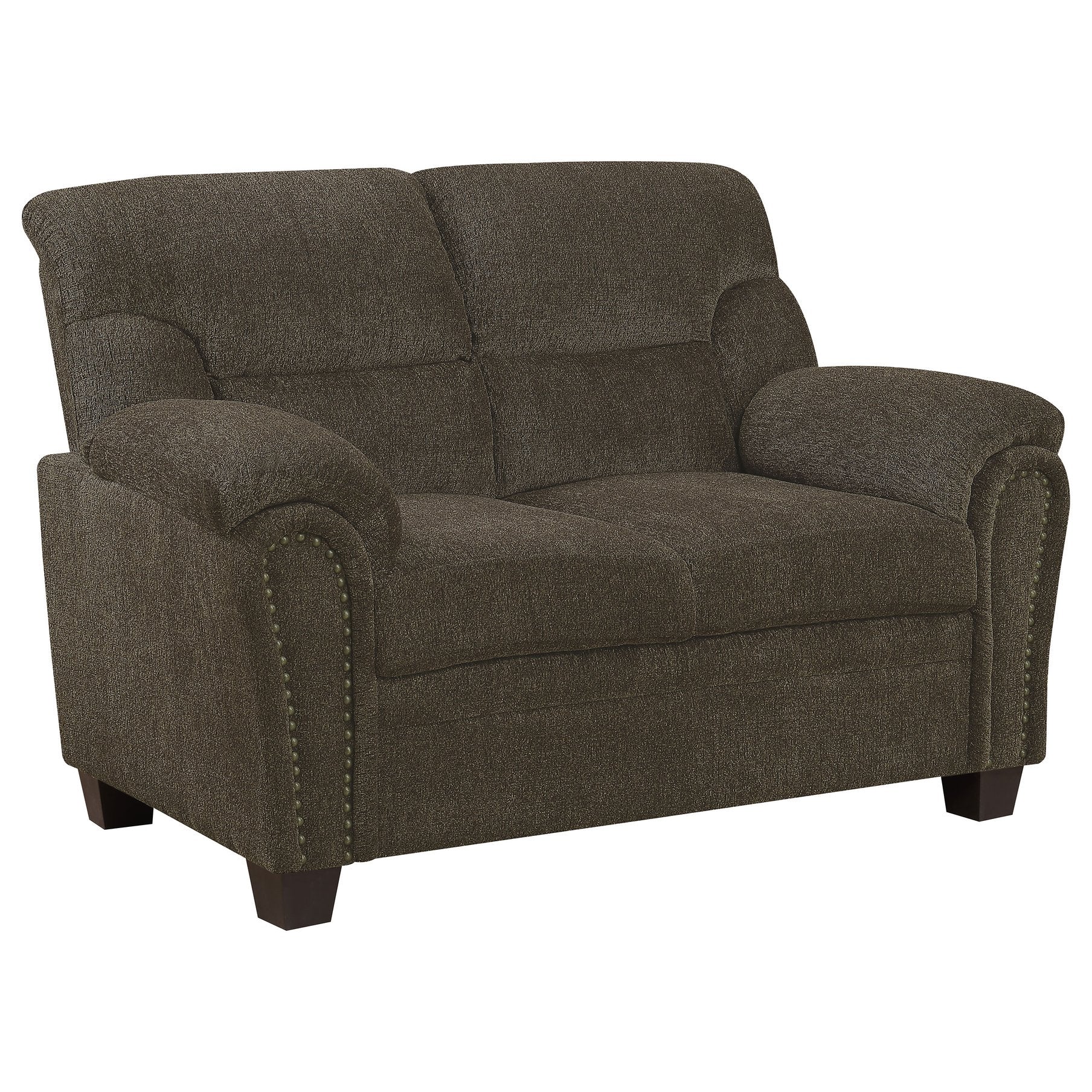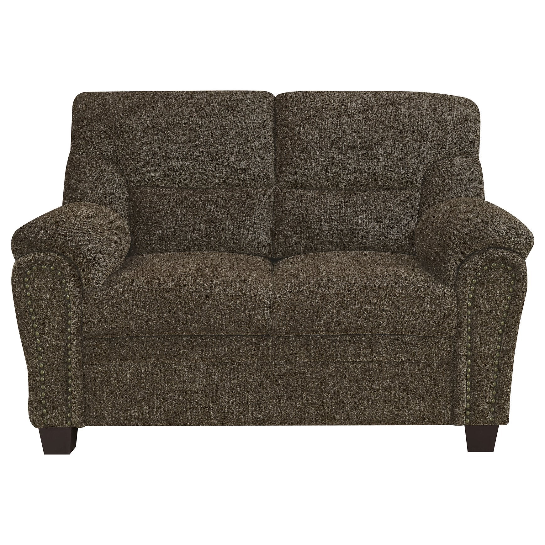 This beautifully tailored loveseat blends classic appeal with modern comfort, offering a warm brown finish that enriches living rooms, dens, or guest spaces. Plushly padded arms and premium upholstery create an inviting seat, while engineered support and quality construction ensure lasting use and everyday comfort.