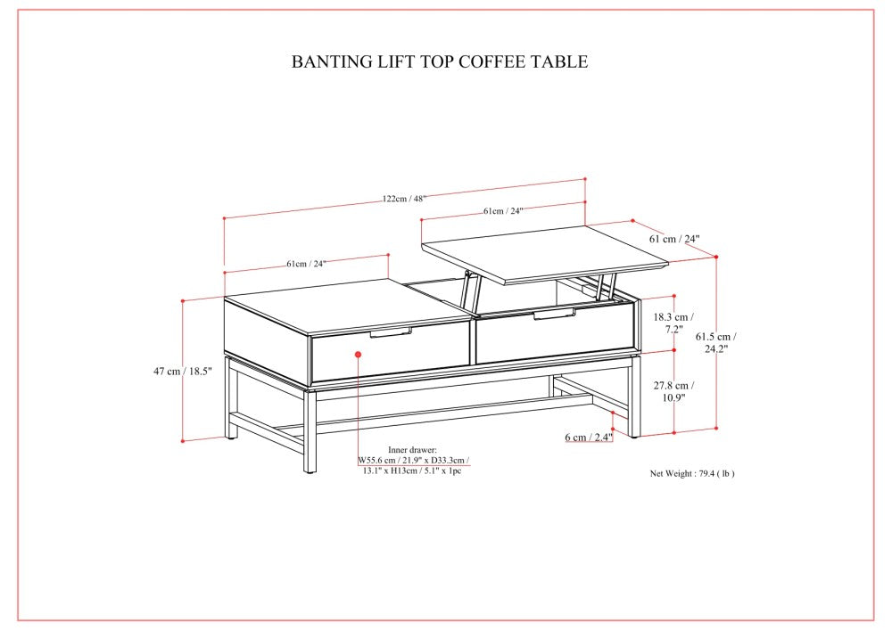 - Multipurpose Use: Serves as a coffee or cocktail table and converts to a raised surface for dining, working, or casual entertaining.