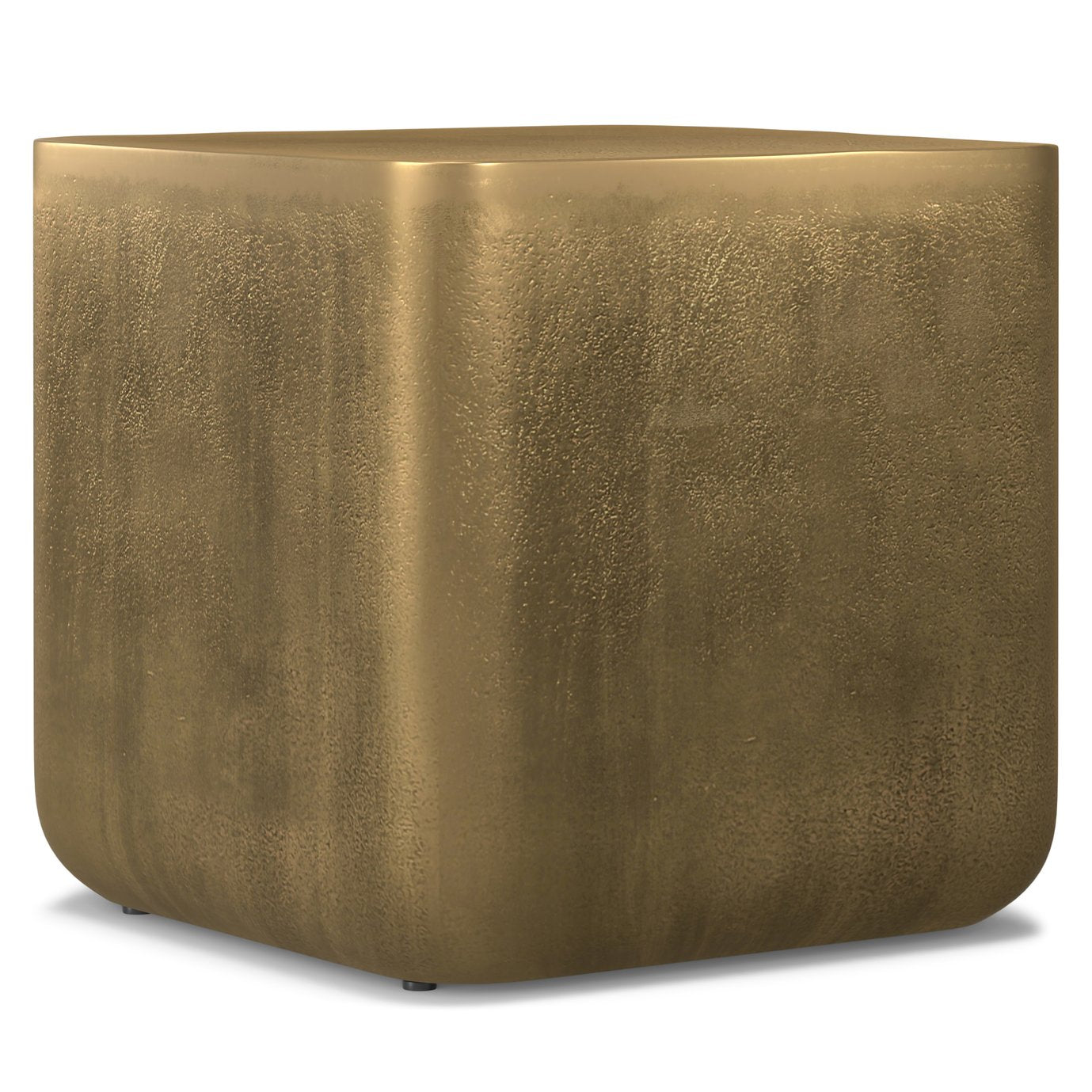 Add a touch of timeless elegance to any room with this handcrafted cast aluminum side table. Finished in antique brass with a subtle textured patina, its rounded-square geometric silhouette blends classic craftsmanship with versatile function—perfect as an end table, bedside accent, or decorative display piece.