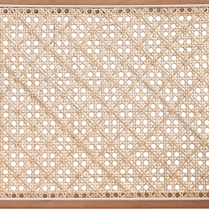 - The chair features a seat and back cushion made of rattan, offering a comfortable and breathable seating experience with a natural look that adds warmth to any room