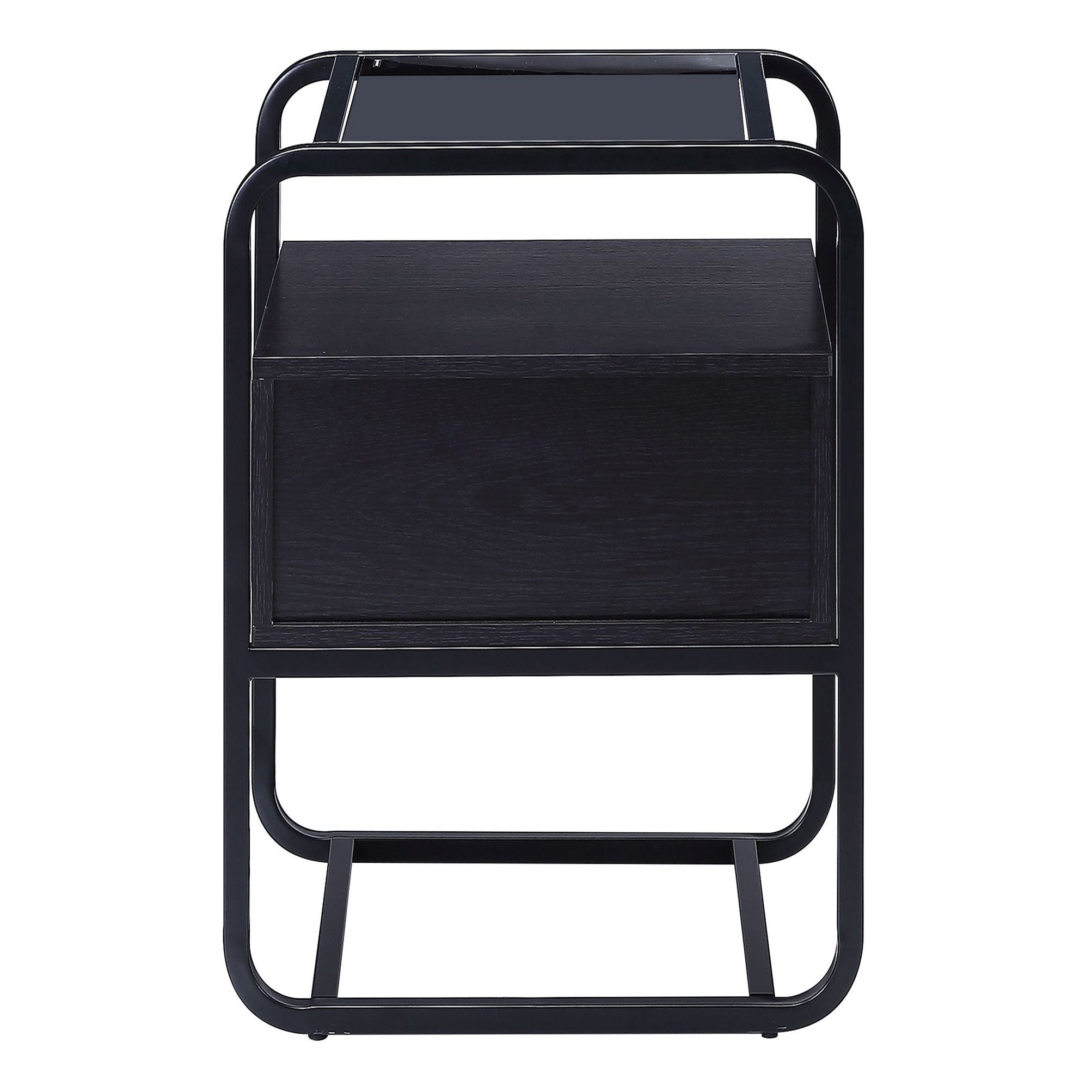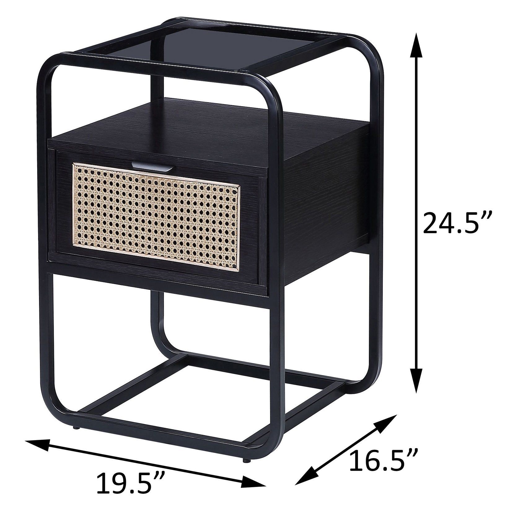 Add a refined, contemporary accent to your living room, bedroom, or entryway with this Black Accent Table. Thoughtfully designed to blend form and function, it pairs a sleek tempered glass top with a rattan-front drawer for subtle texture and concealed storage. Durable materials and smooth metal glides make it a reliable everyday surface for drinks, a lamp, or decorative accents, while its compact footprint fits easily beside seating or in tighter spaces.